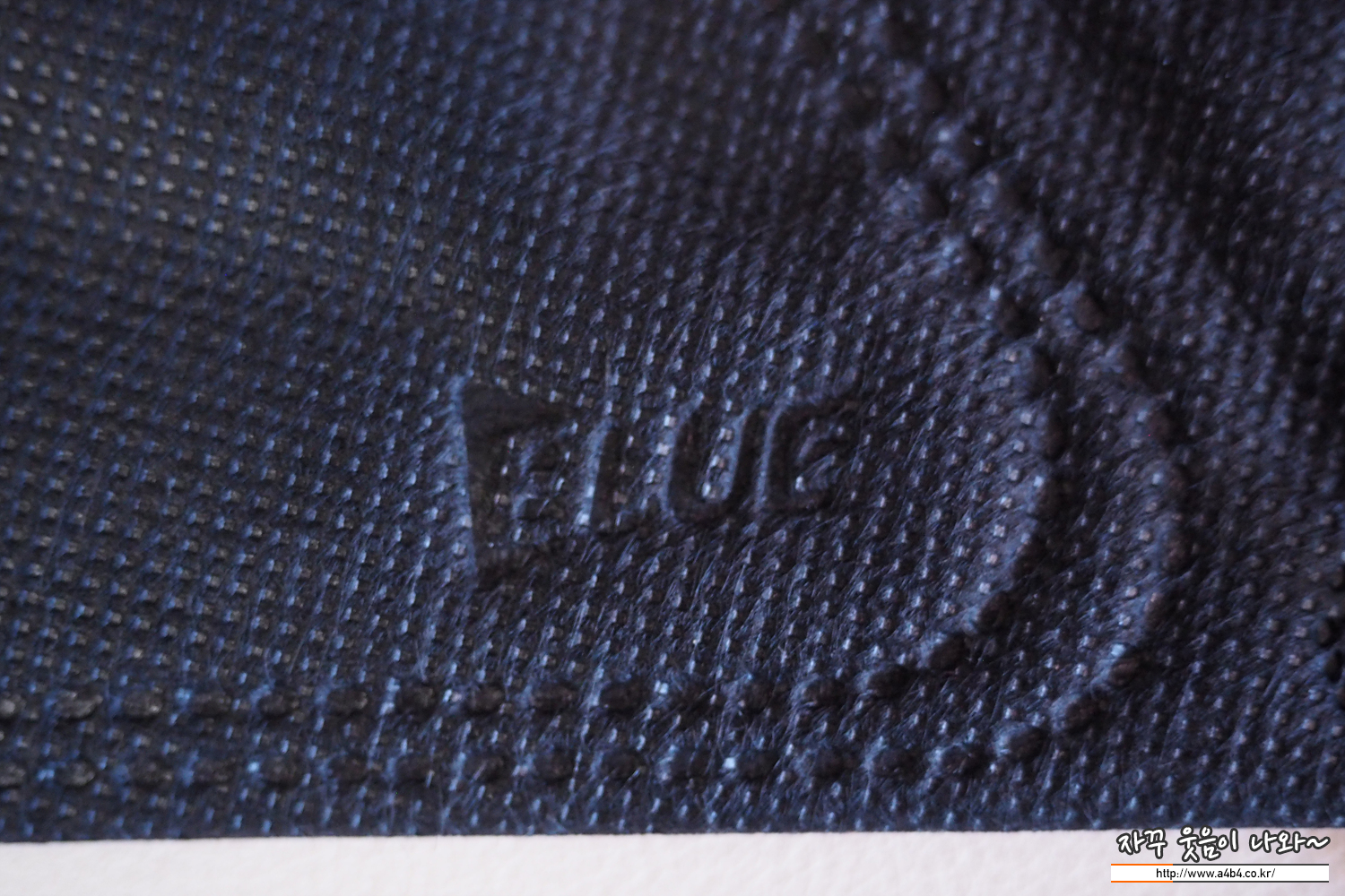 또한 마스크 앞부분에는 제품 브랜드명인 Blue가 각인되어 있습니다. 각인 상태는 깔끔합니다.