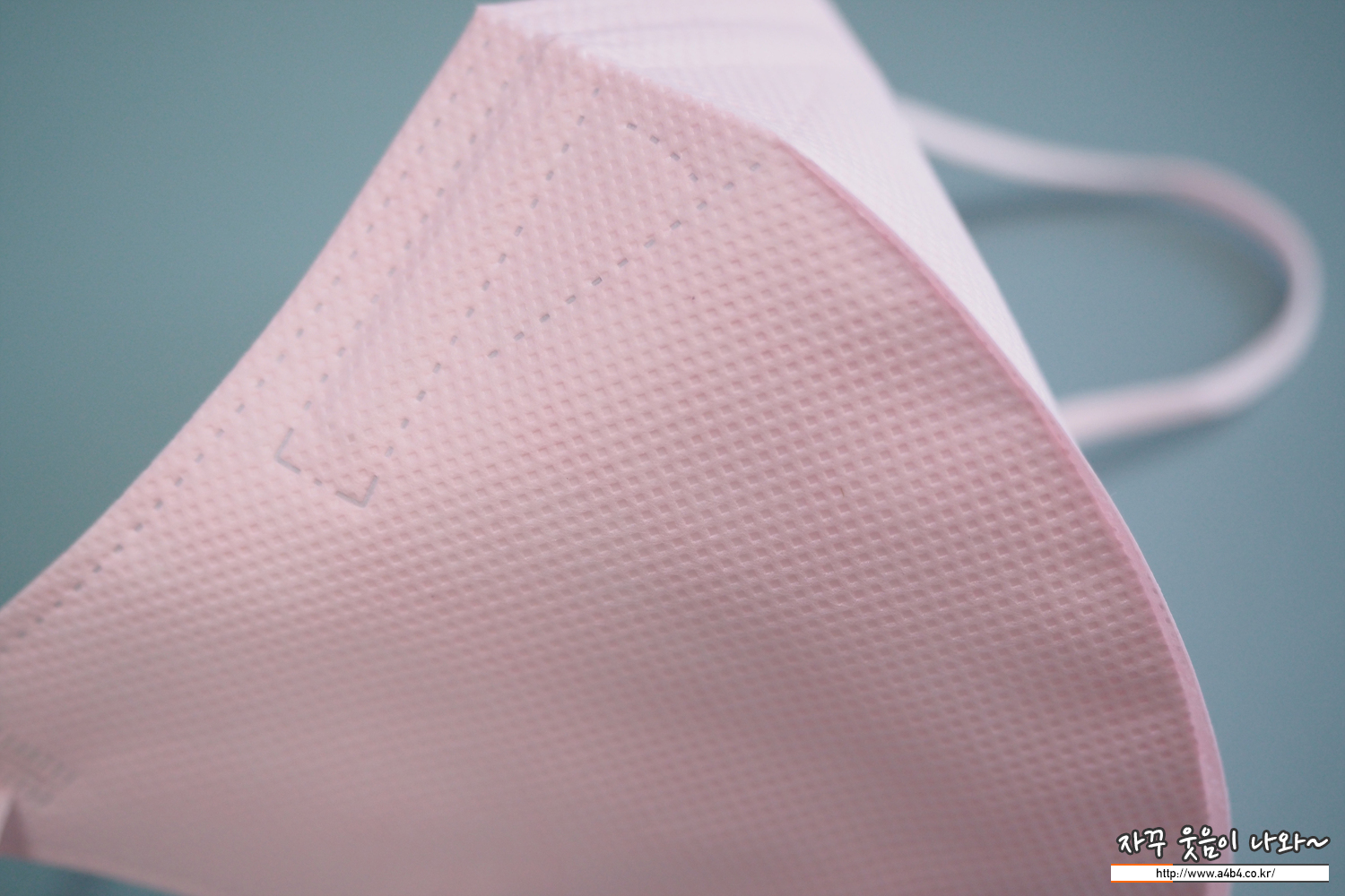 위 사진에서는 오른쪽, 아래 사진에서는 뒷부분이 마스크가 오늘 리뷰하는 '연한분홍색 (블리셔핑크)' 입니다. 다른 하나는 '연한 상호색 (베이비 핑크)' 컬러로 비교해 보세요