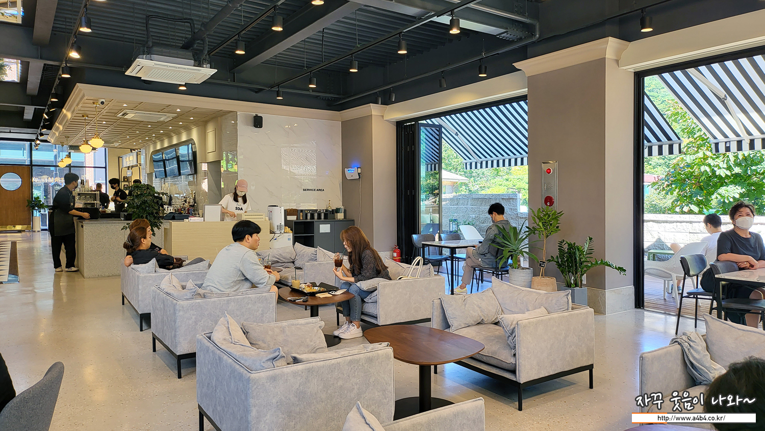 미니멀하고 심플한 인테리어 구조와 테이블간 거리도 여유있어 편하게 휴식을 할 수 있는 구조입니다.