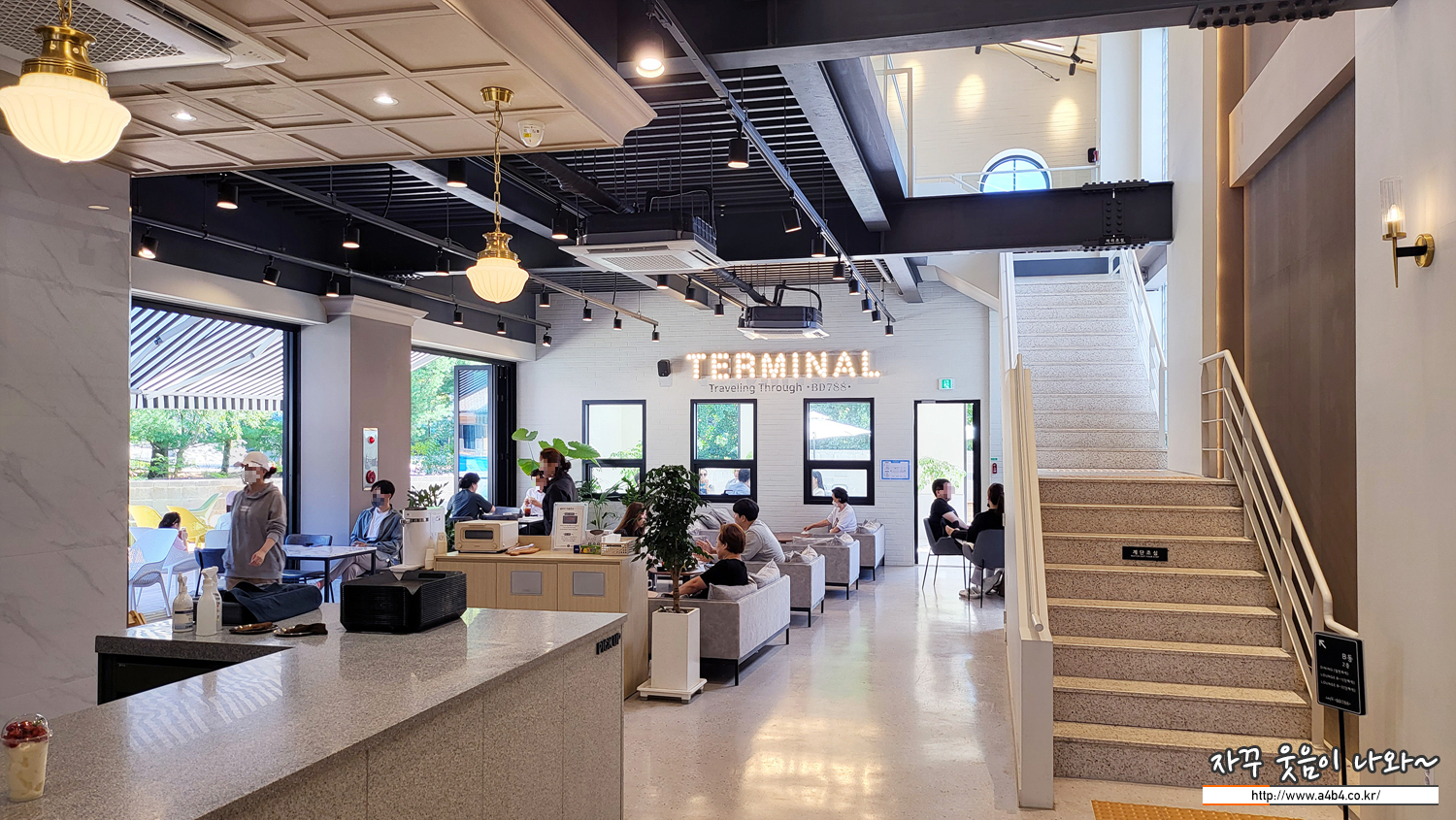 이곳 비디788 베이커리카페는 터미널의 콘셉으로 구성되어 있습니다. 비행기 터미널 보다는 큰 열차 터미널이 생각나는 H빔이 노출된 구조를 보여줍니다.