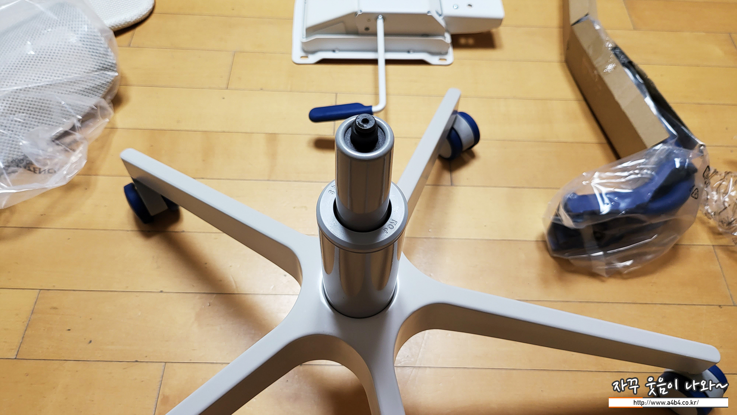 구성은 크게 등받이와 의자 아랫부분, 바퀴를 장착해야 하는 오발, 높낲이조걸판과 쇼바, 팔걸이 등으로 구성되어 있습니다. 부품수가 많은 편은 아닙니다.