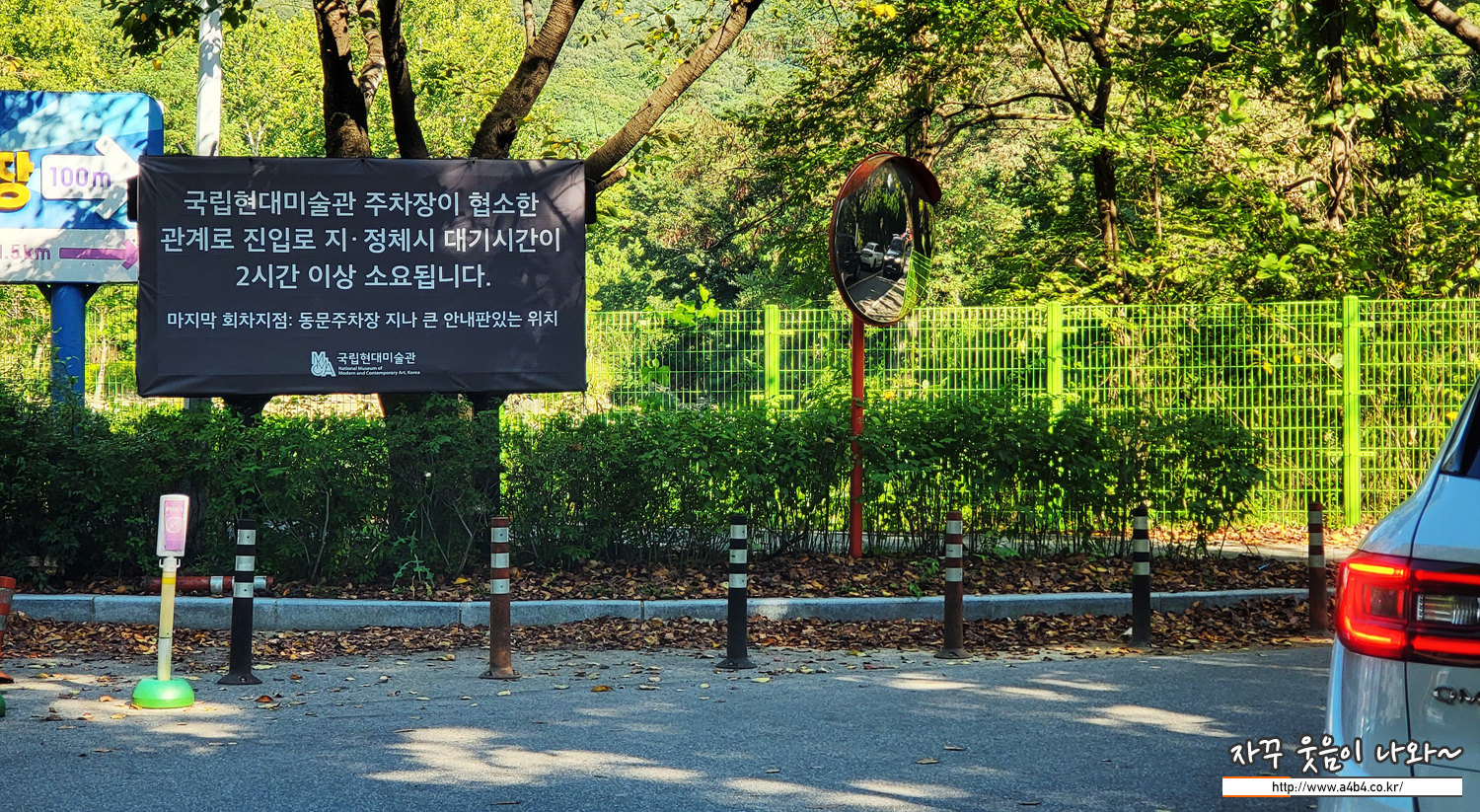 주말오후 서울랜드 방문고객으로 역대급 교통대란이 발생 했습니다. 가능하다면 서울대공원 주차장에 주차하시고 코끼리 열차를 타고 이동 하시거나, 아니면 두 시간 이상 시간 여유를 가지고 방문하세요. 저는 이번 국립현대미술관 과천관 방문은 백남준 다다익선과 함께 이건희 특별전을 관람하러 왔는데, 이건희 특별전 예약시간에 늦을 뻔 했습니다.