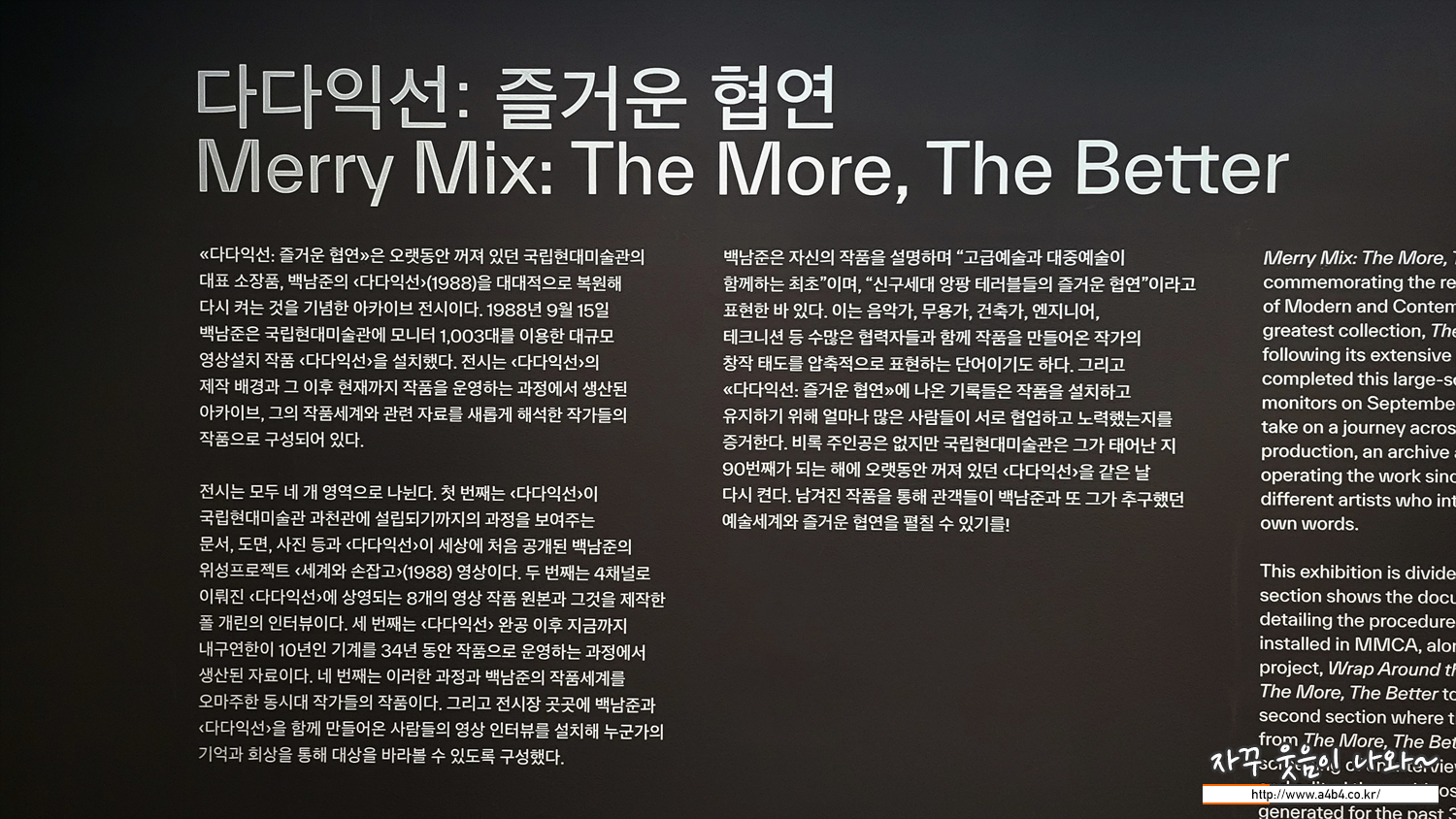 과천 국립현대미술관 3층에서는 백남준 다다익선 재가동과 함께 '다다익선: 즐거운 협연'이 열리고 있습니다.