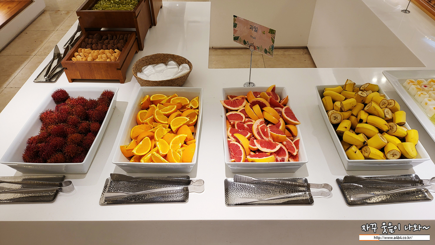 후식은 과일 4종과 약간의 쿠키들이 준비되어 있습니다.