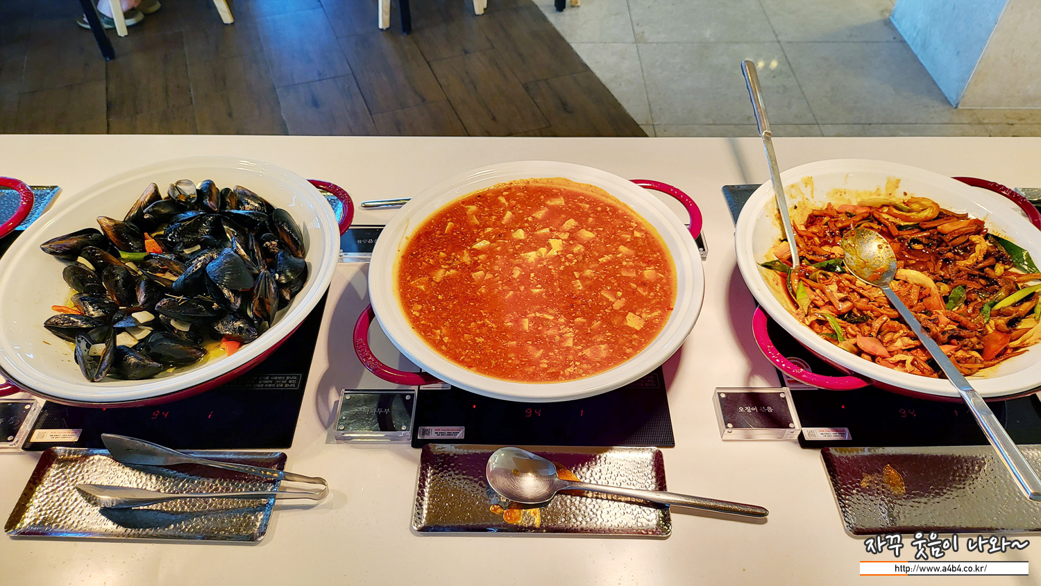 홍합, 마파두부, 오징어볶음
