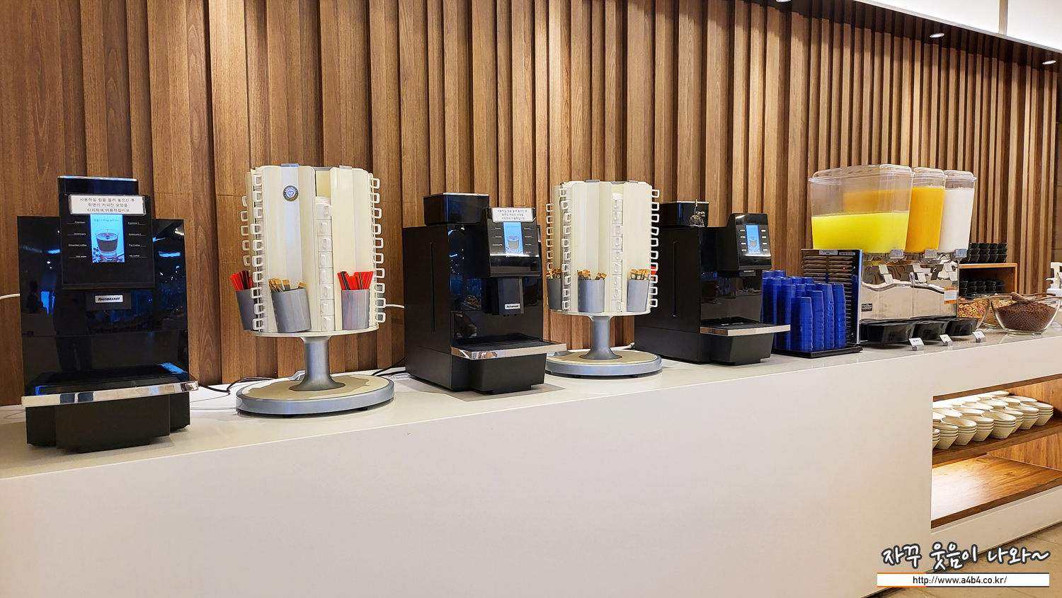 커피와 주스, 그리고 시리얼도 준비되어 있네요.