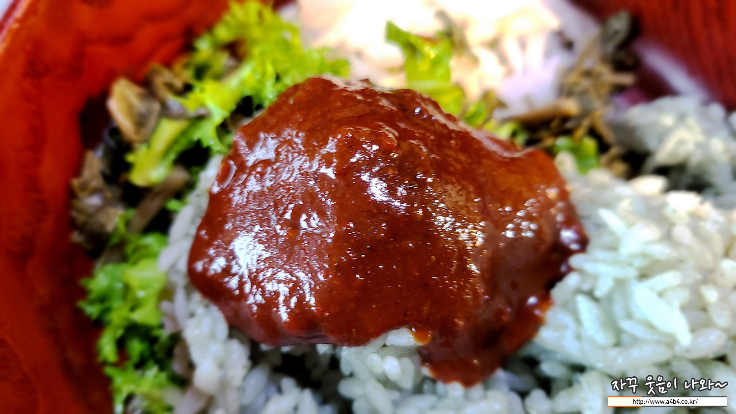 비빔밥은 양념장 또는 고추장을 선택하시면 됩니다. 저는 고추장으로... 심심한 나물을 고추장에 의존하게 되네요.