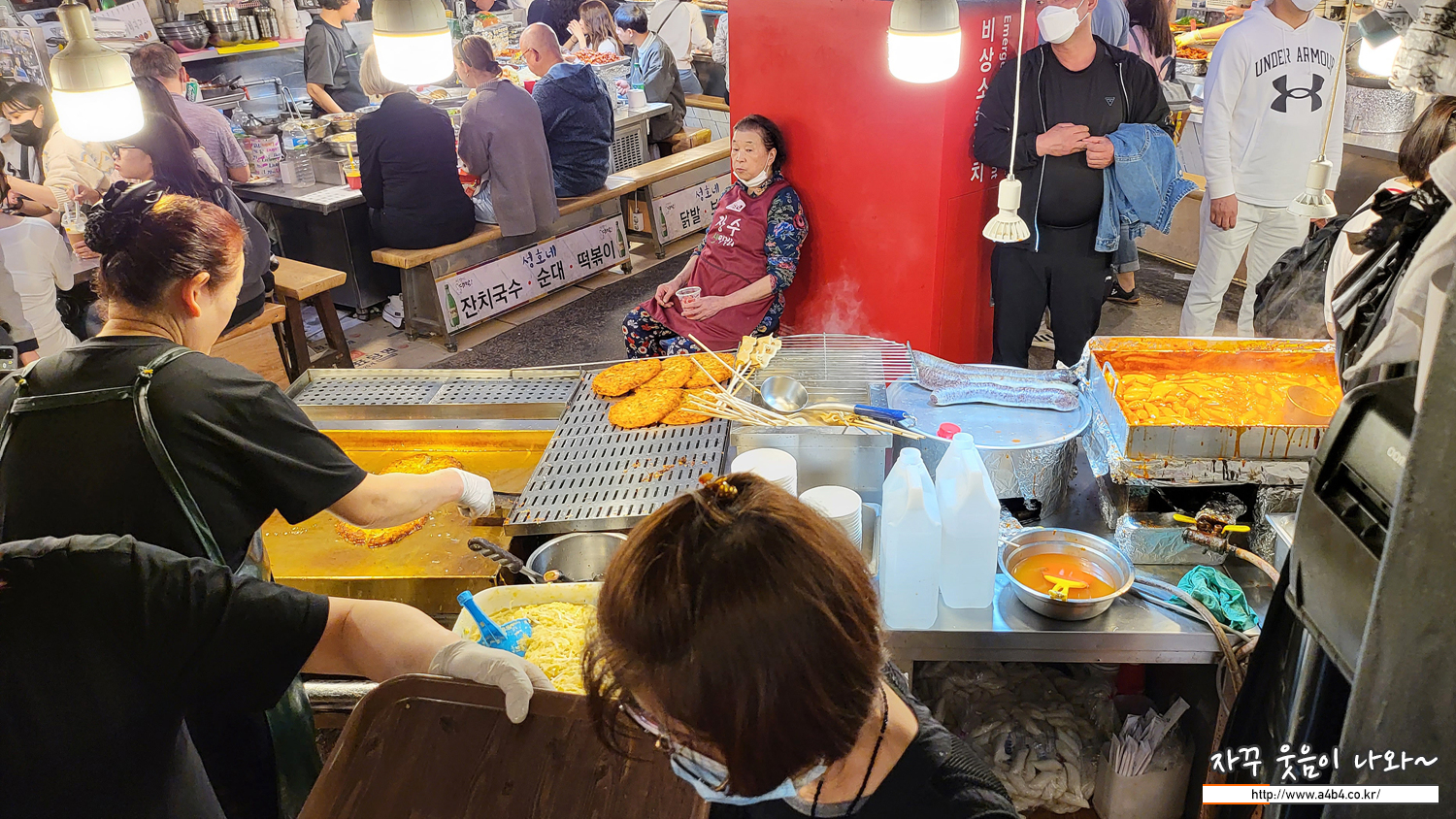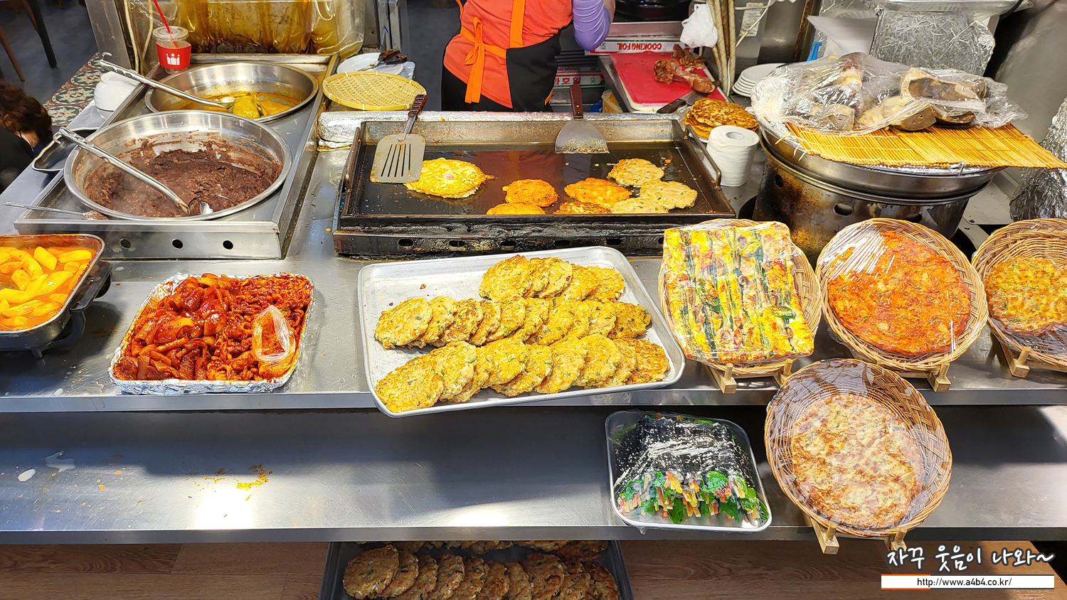 입구에서도 계속 김밥을 만들고 녹두전을 부치고 있으시네요. 그냥 자동으로 몸이 끌린다는...