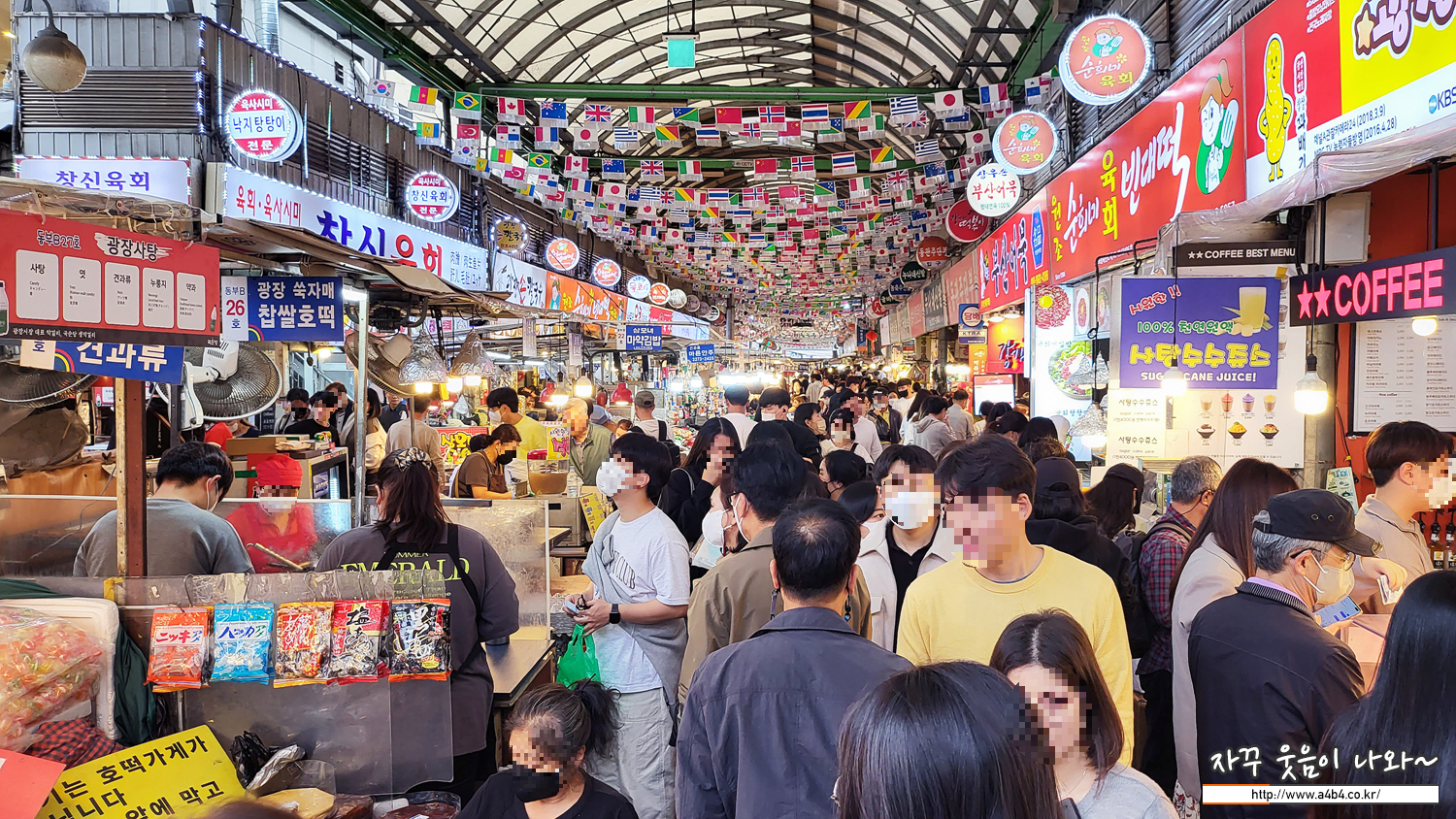 광장시장 안쪽으로 들어오니 정말로 사람들 머리만 보입니다. 주말 오후 사람들에게 밀려 다닙니다. 길에 서 있을 수 없을 정도!!!