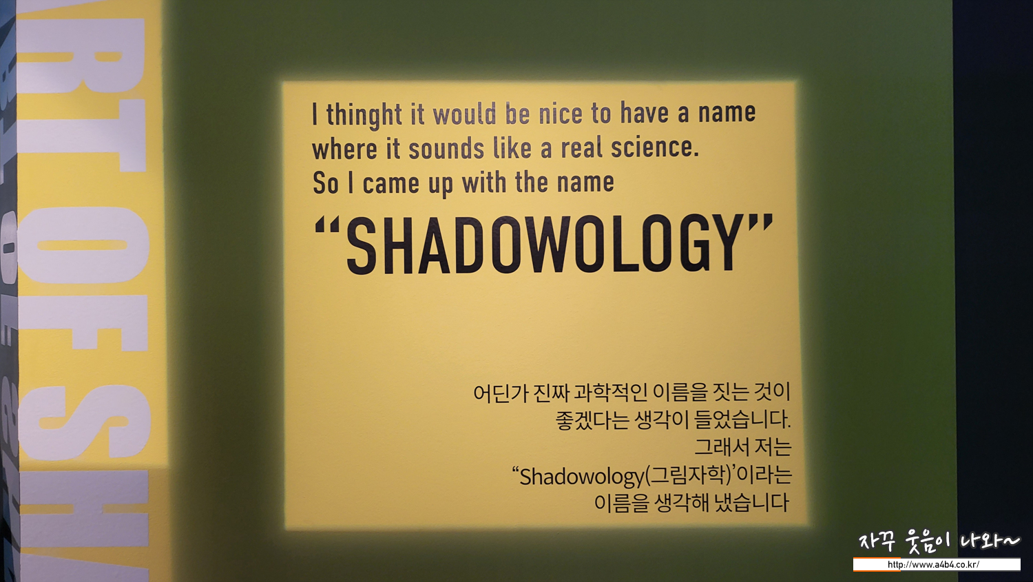 이번 '빈센트 발 : The Art of Shadow' 전시회 입구입니다. 이번 전시회 작품 중심으로 제작과정 및 콘셉트에 대한 영상이 소개되고 있습니다.