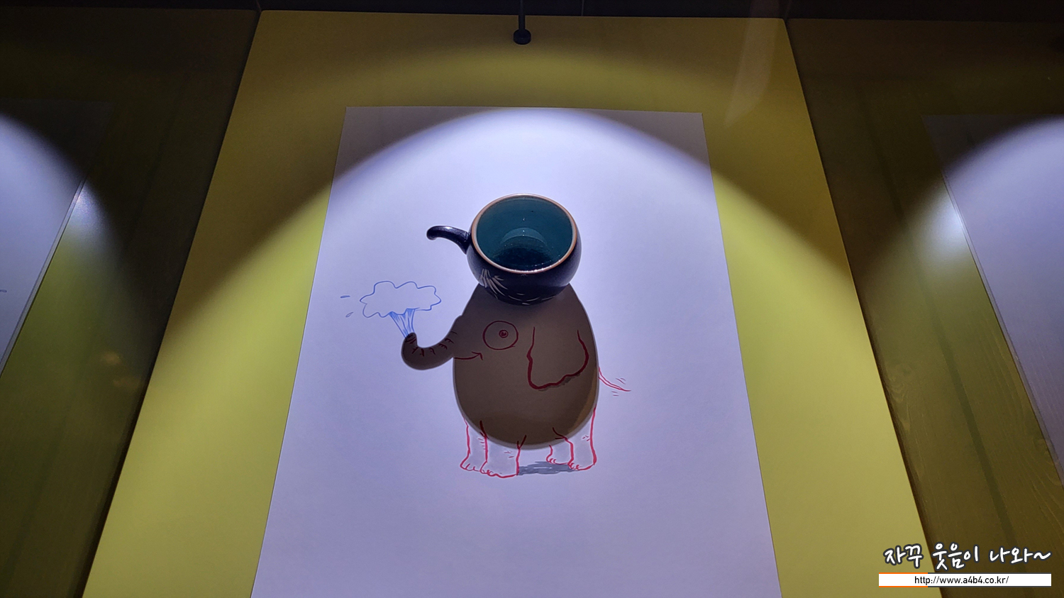 이 작품은 나의 모든 작품의 시작이다. 나에게 이 찻잔이 없었다면 쉐도우로지도 없었을 것이다.2015년 베트남을 여행하던 중 노점에서 구입한 찻잔인데, 몇개월 뒤 상에 앉아서 영화 시나리오 작업을 하던 중 어느 순간 갑자기 이 작고 귀여운 코끼리가 찻잔의 그림자 속에 숨어있다는 사실을 발견했다. 나는 코끼리에게 눈과 다리 그리고 멋진 미소를 선물한 뒤 사진을 찍어 페이스북에 올렸다.
