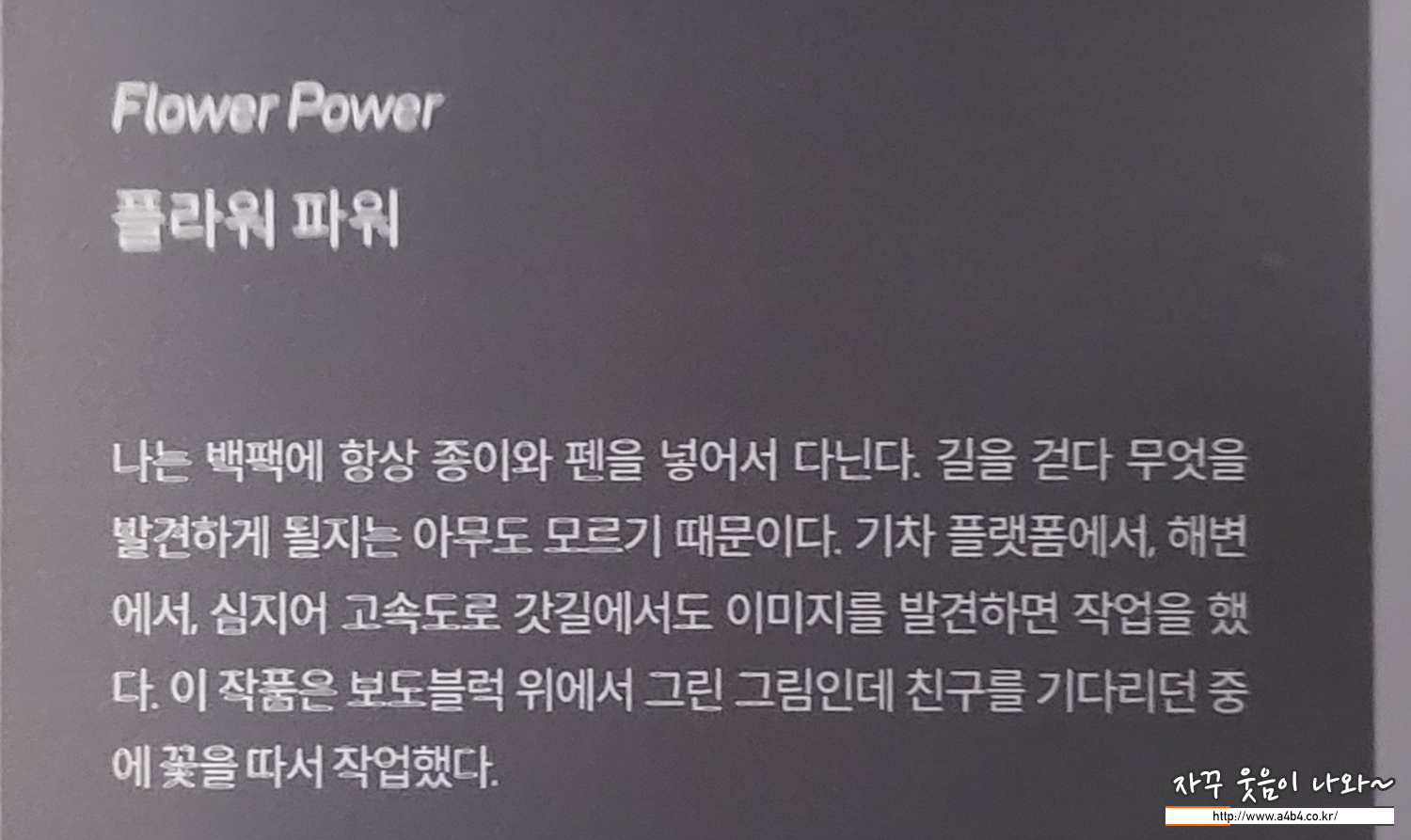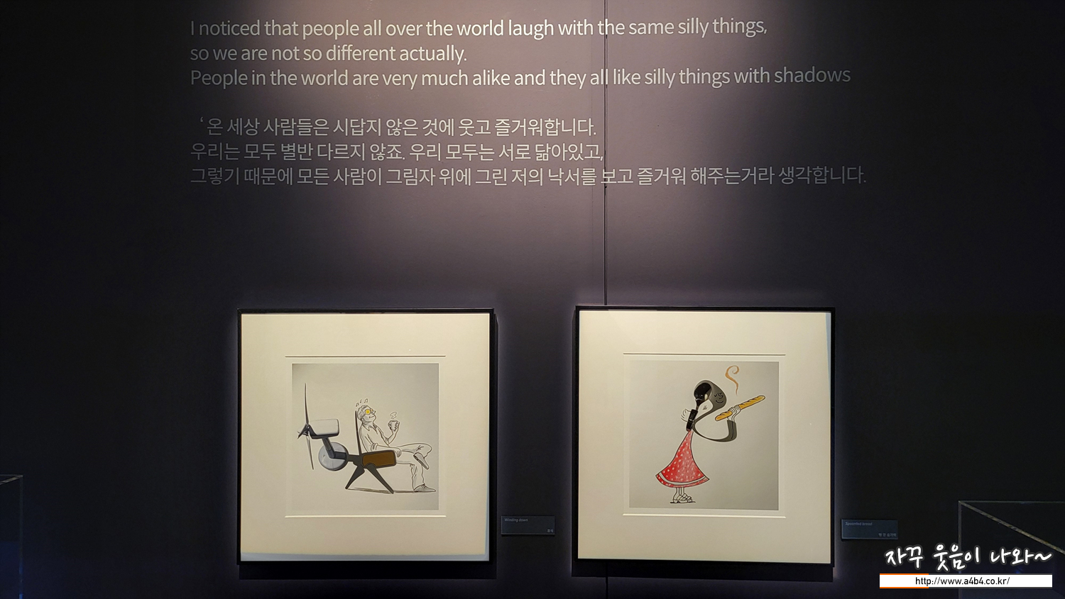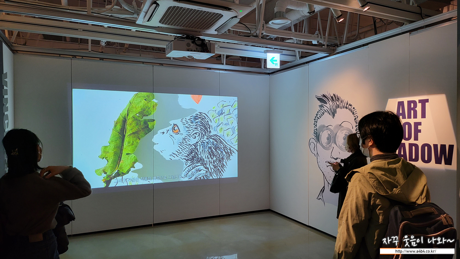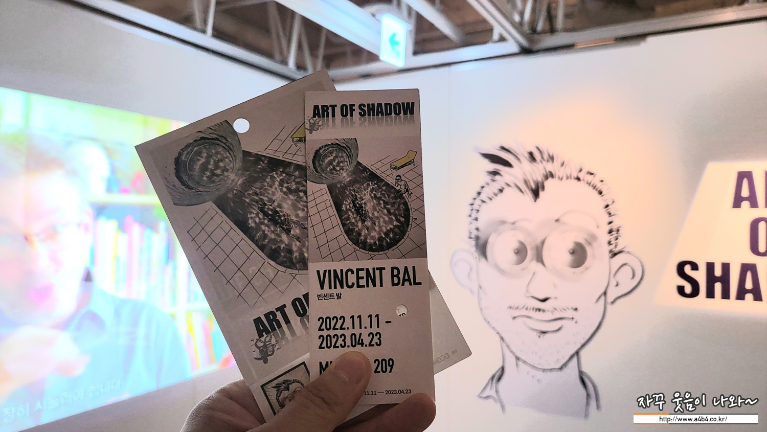 이번 '빈센트 발 : The Art of Shadow' 전시회 입구입니다. 이번 전시회 작품 중심으로 제작과정 및 콘셉트에 대한 영상이 소개되고 있습니다.