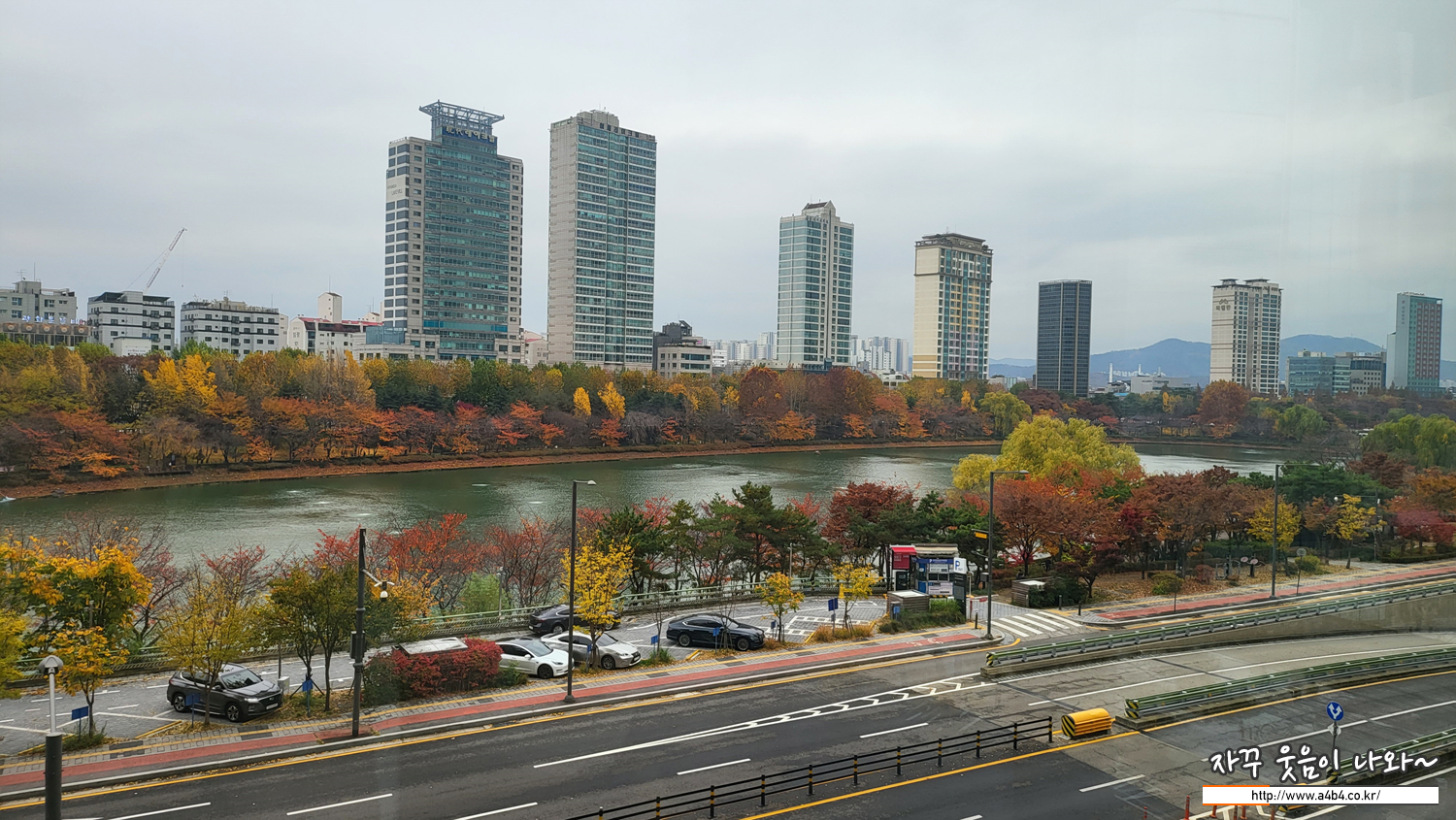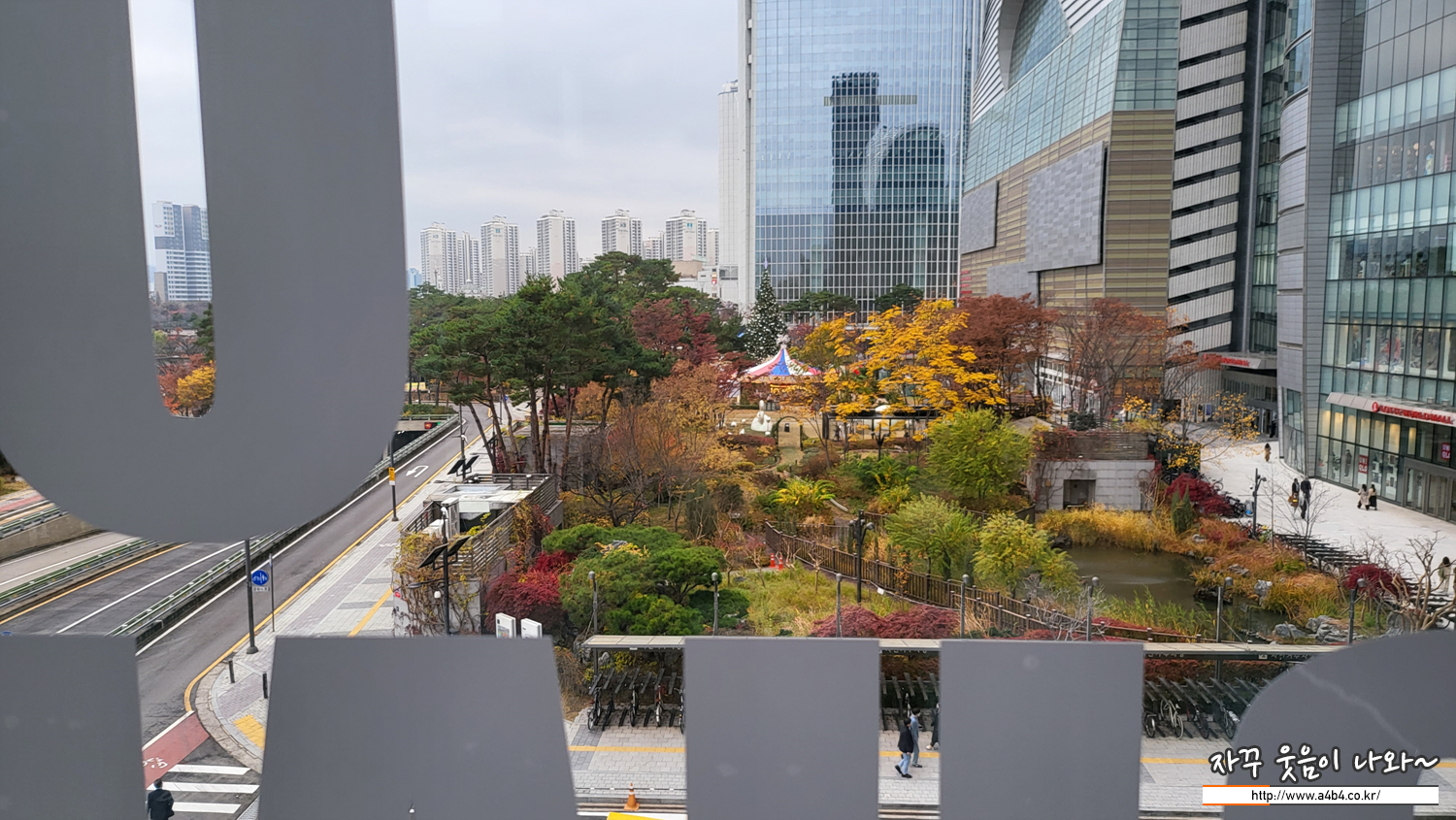 이번 빈센트발 전시회가 열리고 있는 뮤지엄209는 소피텔 건물 3층에 위치해 있습니다. 전시회장에서 바깥을 볼 수 있는 곳이 많지는 않은데요. 이곳은 작품 관람 중간에 석촌호수와 롯데월드몰 정원을 감상할 수 있는 공간도 있네요. 단풍으로 물든 석촌호수 풍경