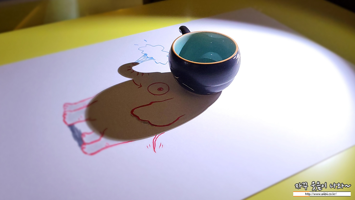 이 작품은 나의 모든 작품의 시작이다. 나에게 이 찻잔이 없었다면 쉐도우로지도 없었을 것이다.2015년 베트남을 여행하던 중 노점에서 구입한 찻잔인데, 몇개월 뒤 상에 앉아서 영화 시나리오 작업을 하던 중 어느 순간 갑자기 이 작고 귀여운 코끼리가 찻잔의 그림자 속에 숨어있다는 사실을 발견했다. 나는 코끼리에게 눈과 다리 그리고 멋진 미소를 선물한 뒤 사진을 찍어 페이스북에 올렸다.