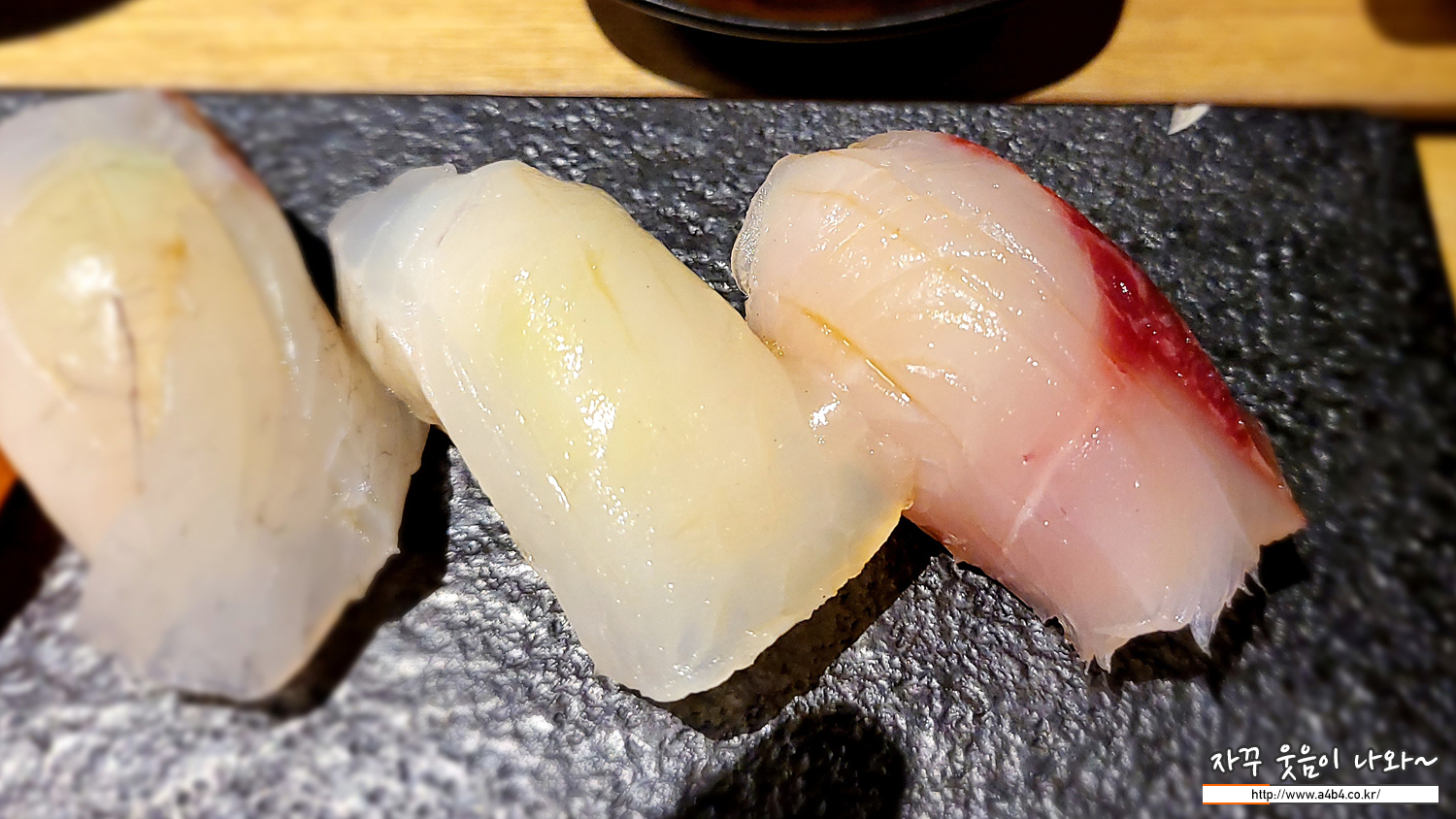 먼저 나온 코바치 초밥 절반은 쏘쏘한 녀석들입니다. 연어 광어 우럭? 등으로 보이는데요. 크게 독특한 초밥은 없습니다.