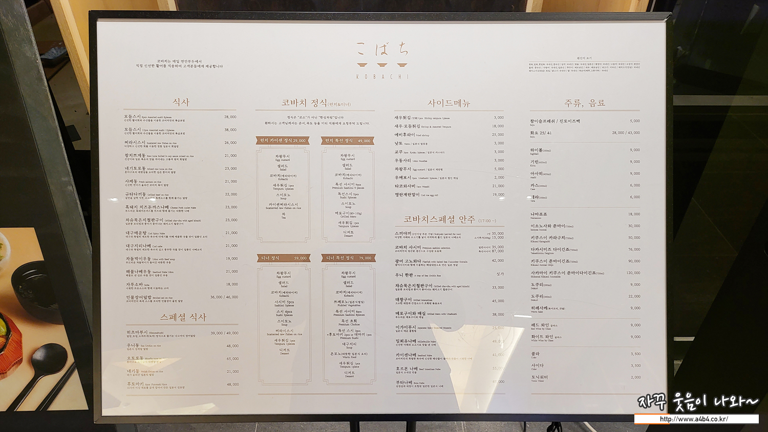 코바치 메뉴판은 클릭하면 확대됩니다.