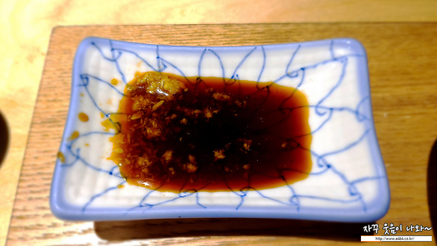 초밥이 나오고 15분이 넘어 나온 두 번째 요리입니다. 이미 앞에 나온 초밥과 튀김은 끝난 상황이네요. 이미 한 명은 식사 절반이 끝났고, 두 명은 요리가 나왔고, 나머지 한 명은 아직도 요리를 기다리고 있네요.