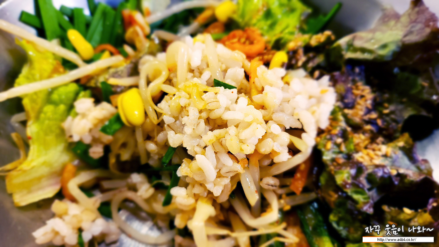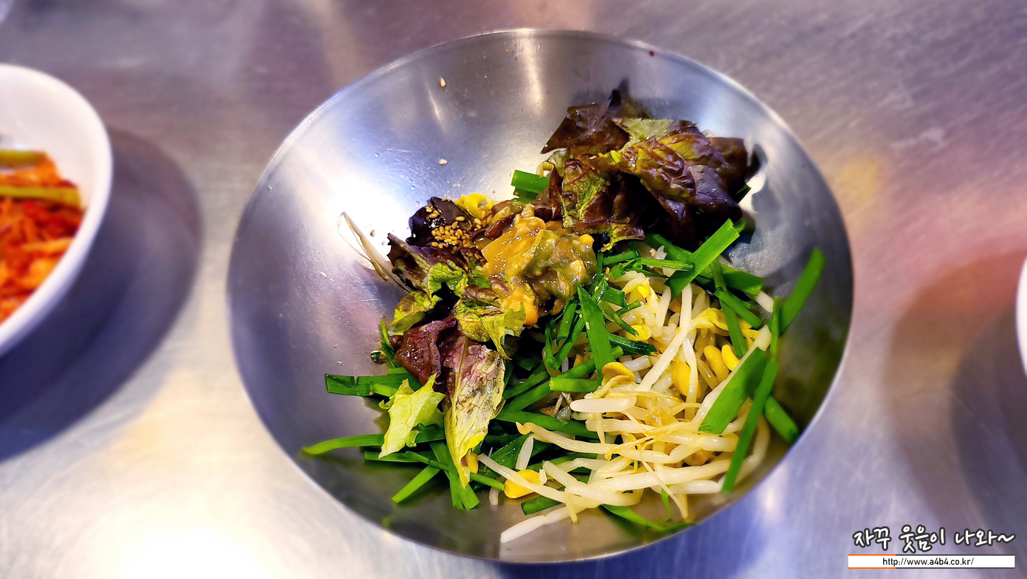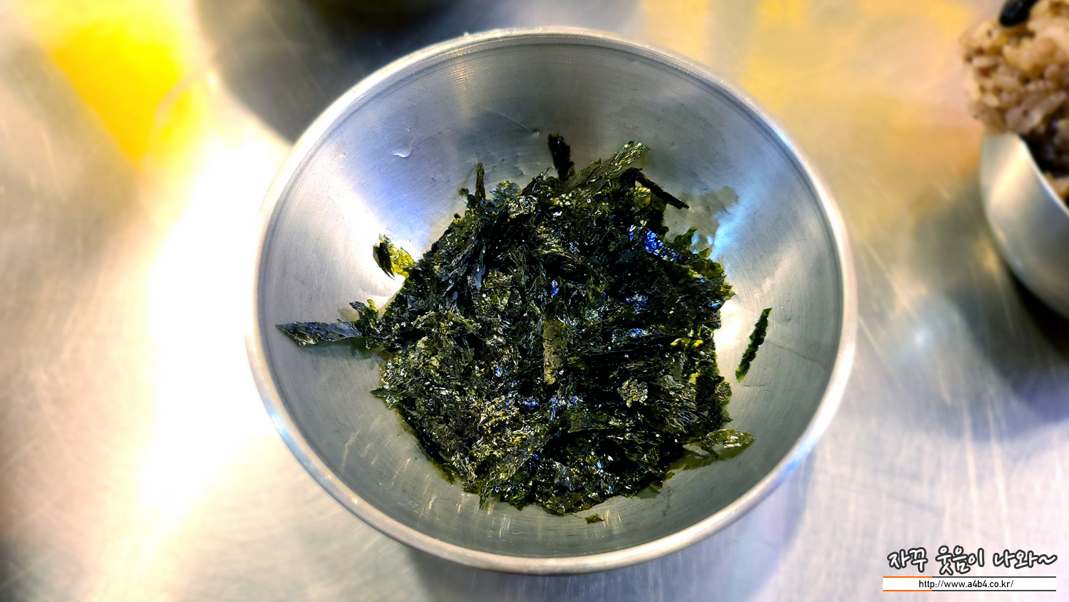 그리고 김가루와 보리밥에 나오는 아채들이 나옵니다. 김가루에 찍어 먹거나, 콩나물 부추 등 아채와 함께 먹는...