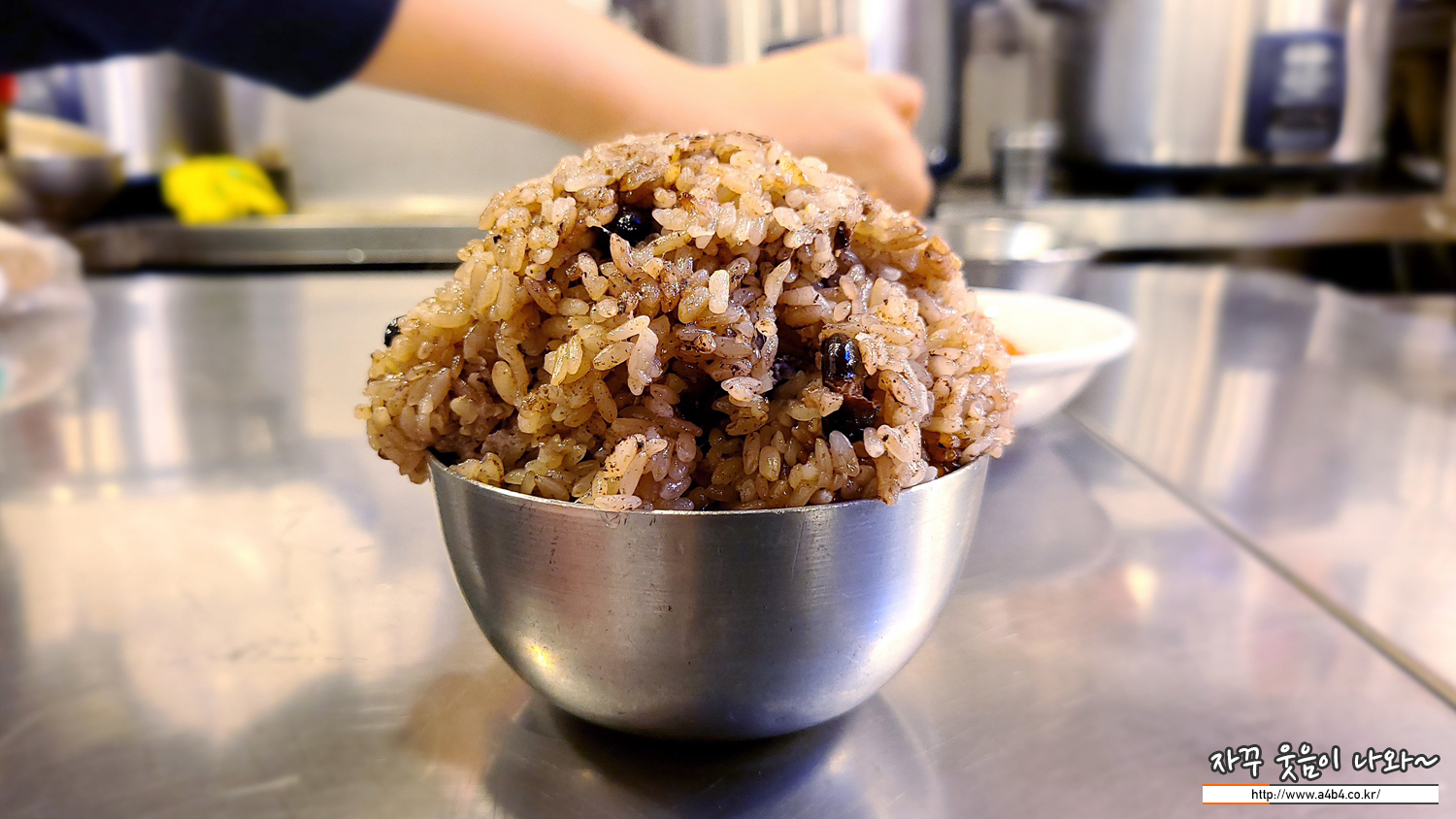 엄청난 높이의 찰밥입니다. 고봉밥이라고 할까요? 이모님께서 높게 쌓으실 수 있는 만큼 쌓으신 듯...