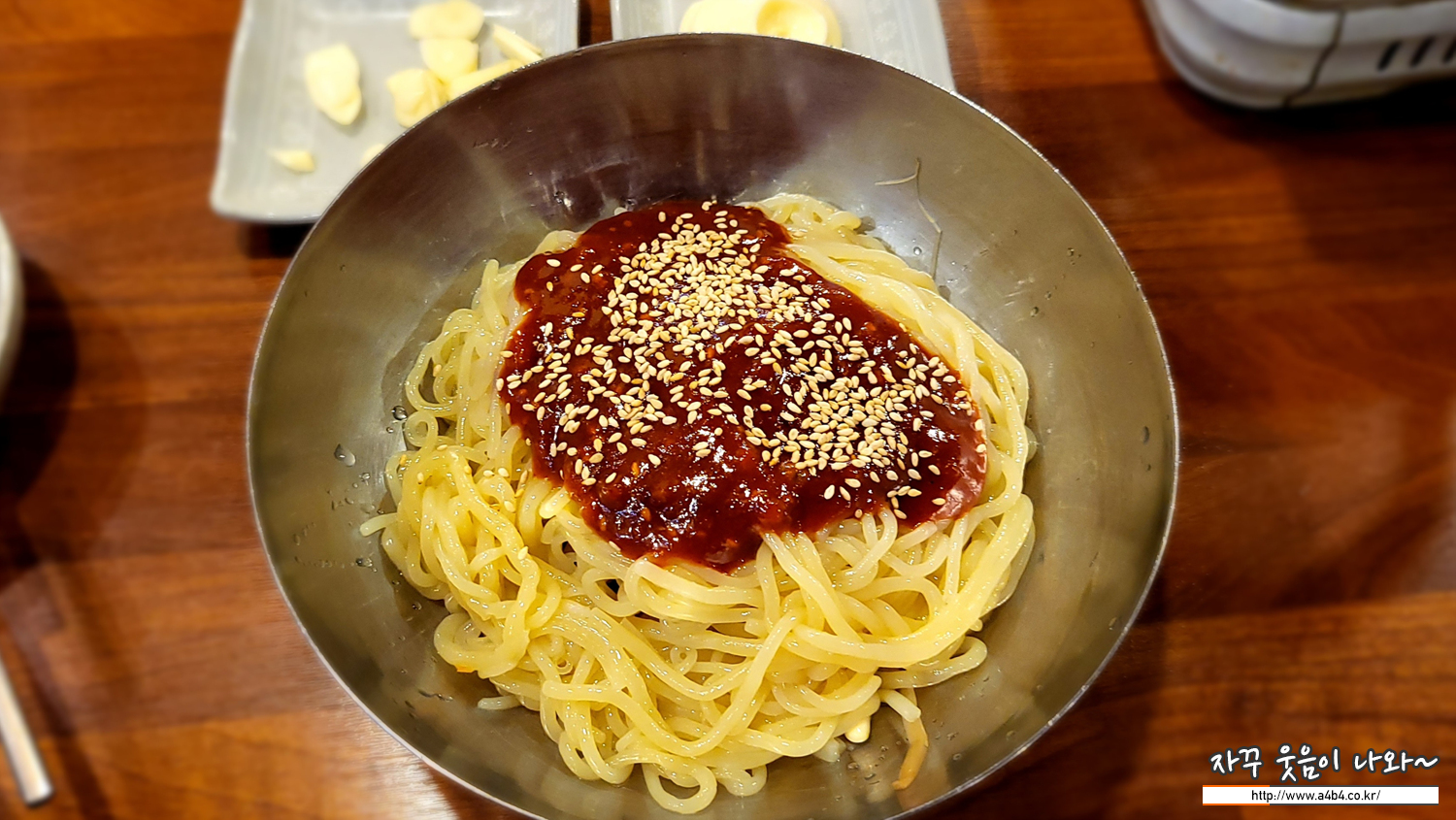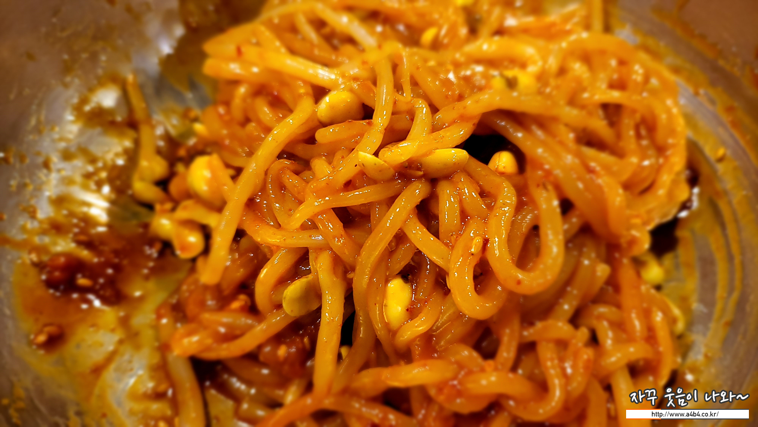 콩나물 쫄면입니다. 정말로 쫄면과 콩나물, 양념장만 들어있는 쫄면입니다.
