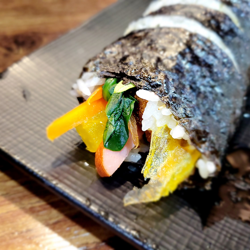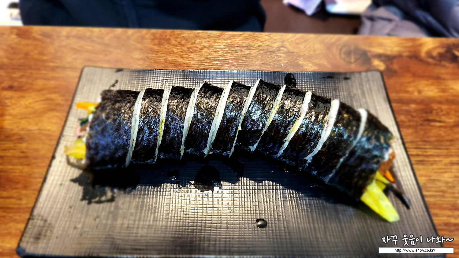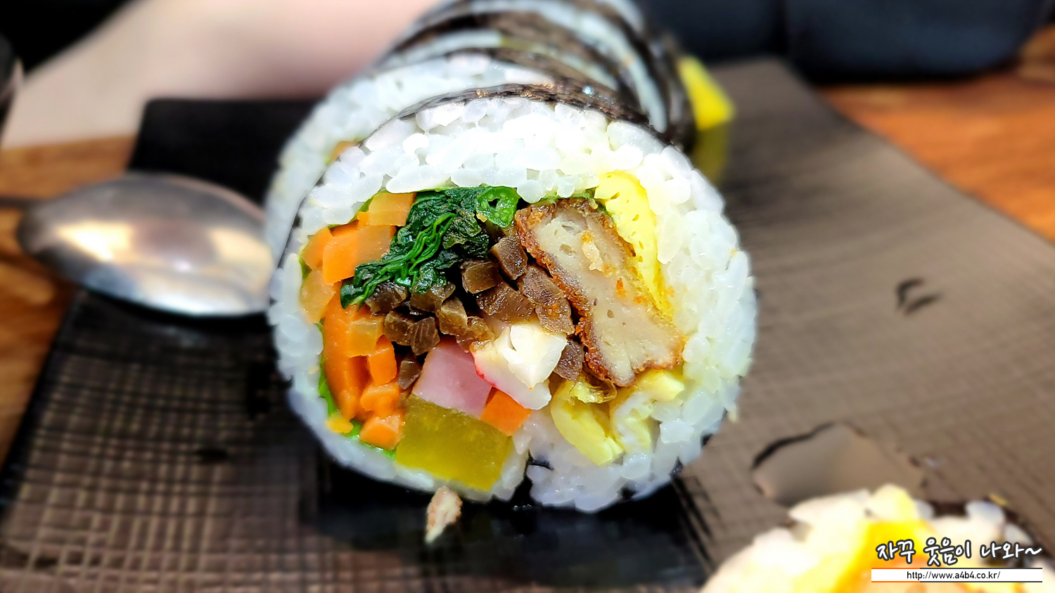 다소 큼직한 크기의 김밥입니다. 김밥 내용물도 실하고 일반적으로 김밥에 들어 있는 내용물은 모두 다 들어있네요. 김밥 한 줄만 먹어도 배부를 양이네요. 맛도 좋네요. 간판이 잠실 김밥인 이유에 동의 합니다.