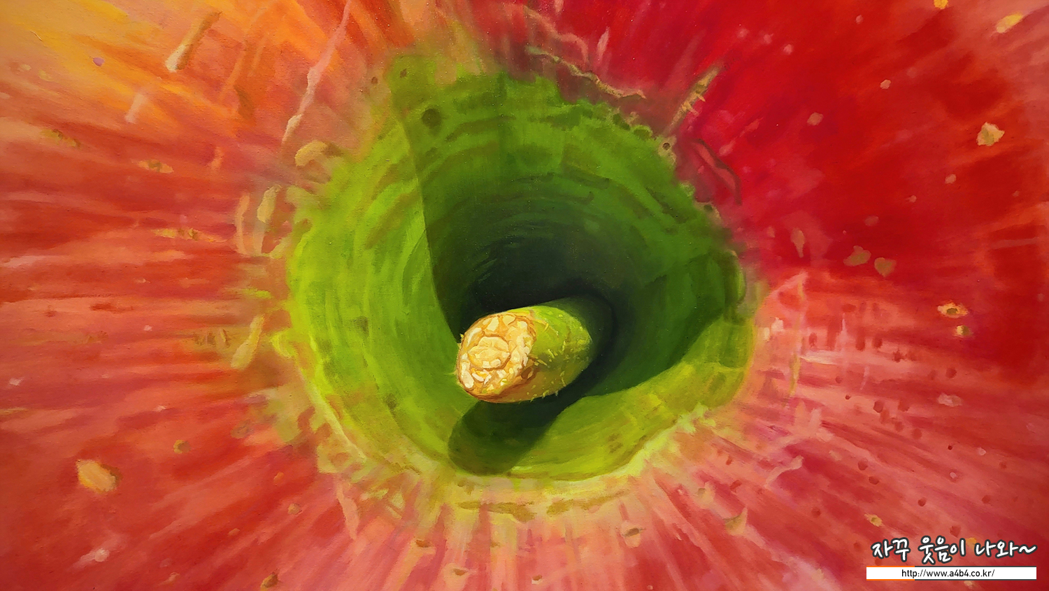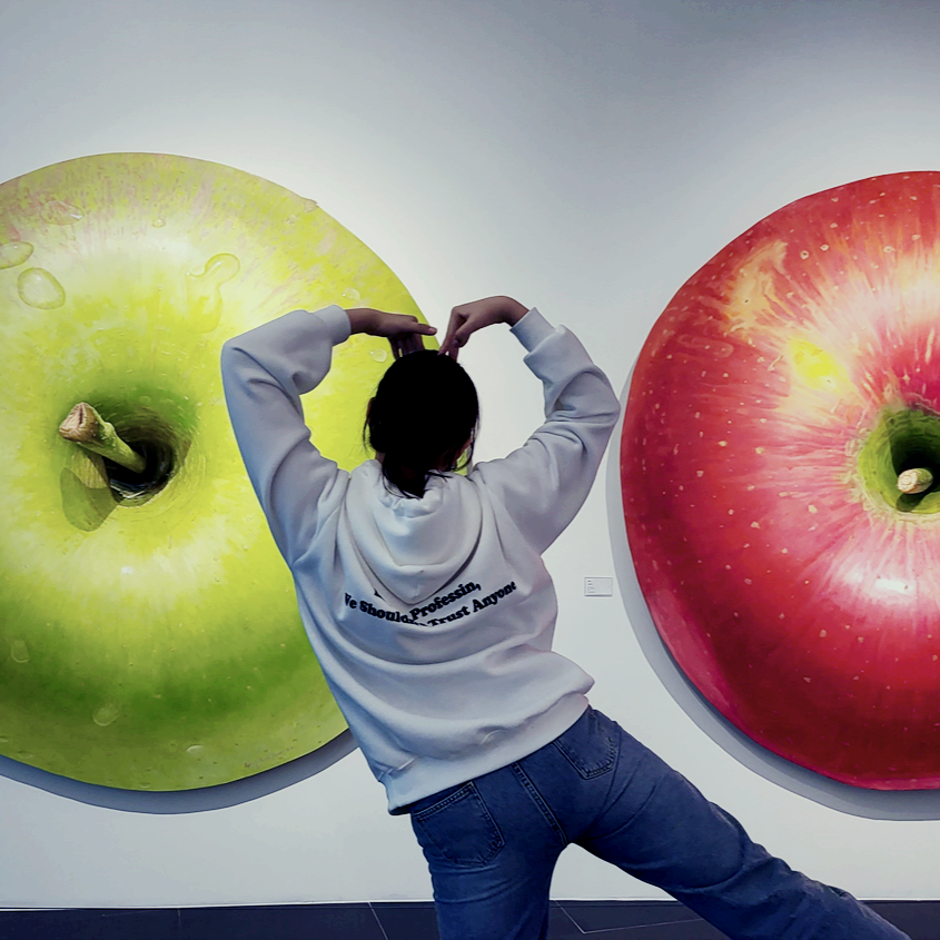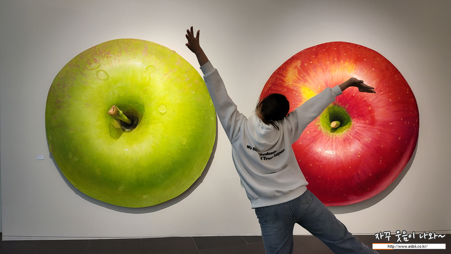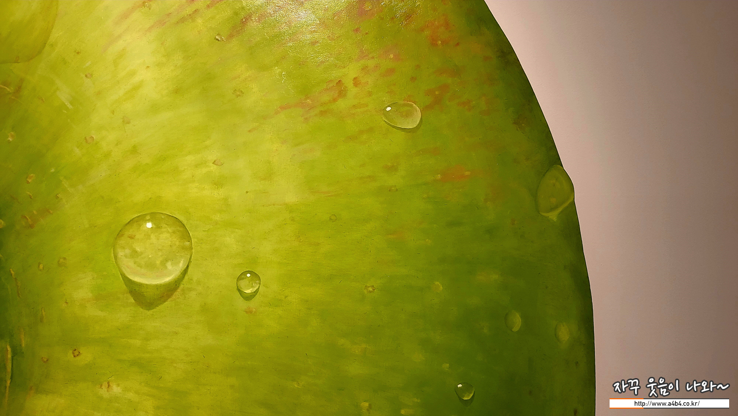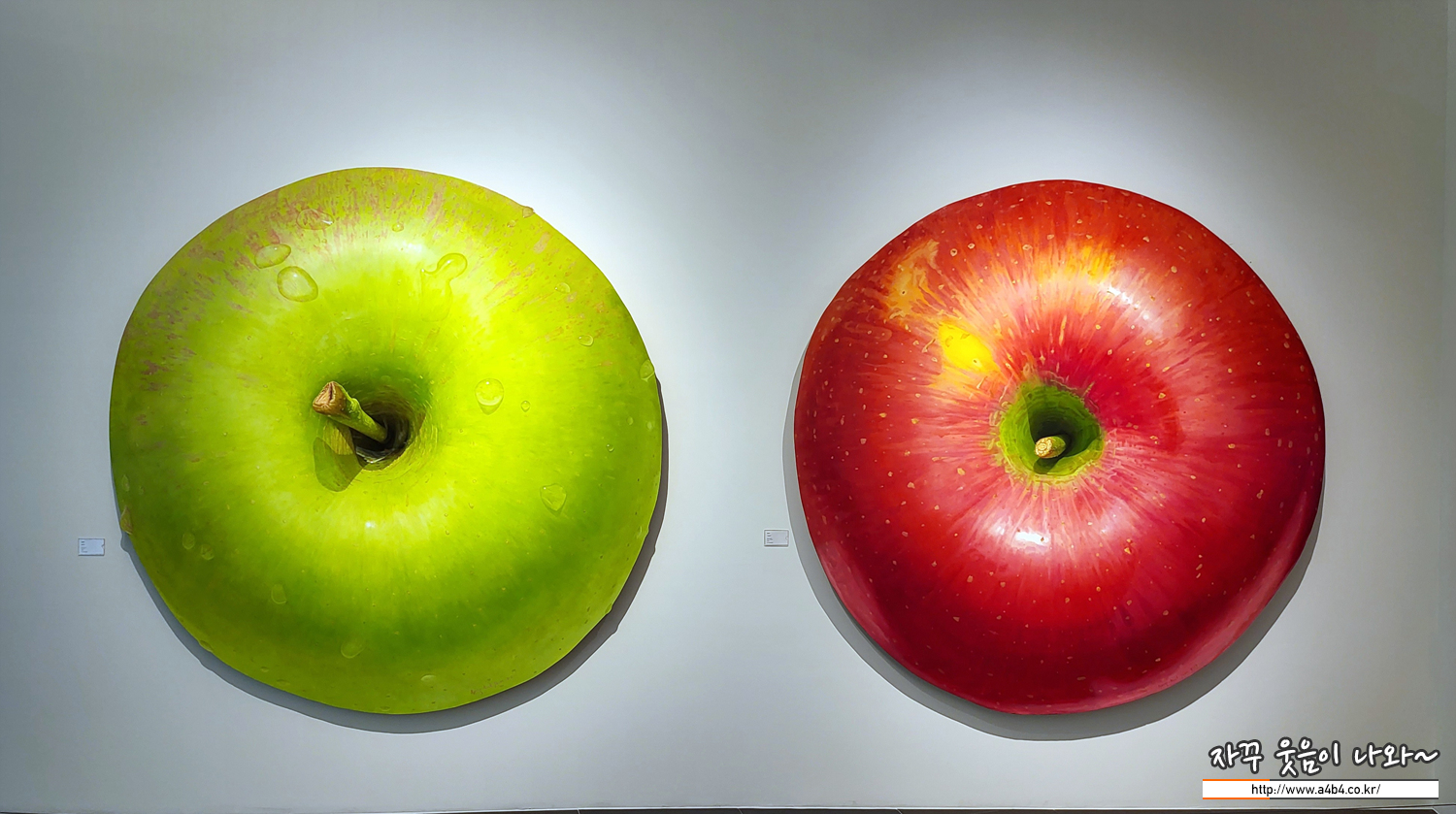 진짜보다 더 진짜같은 유화 작품입니다. 사과 작품 크기는 2미터가 넘는 사이즈로 작품 가격도 1억원을 넘는 가격입니다.