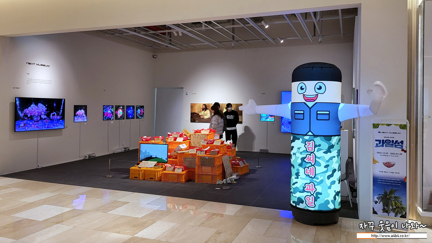 카카오그룹의 블록체인 기술 계열사 ‘그라운드엑스’와 함께 대체불가토큰(NFT) 전시 공간 ‘넥스트 뮤지엄’이 오픈 되었는데요. 첫 전시는 과일을 소재로 작업한 '과일섬' 전시가 진행되고 있습니다.