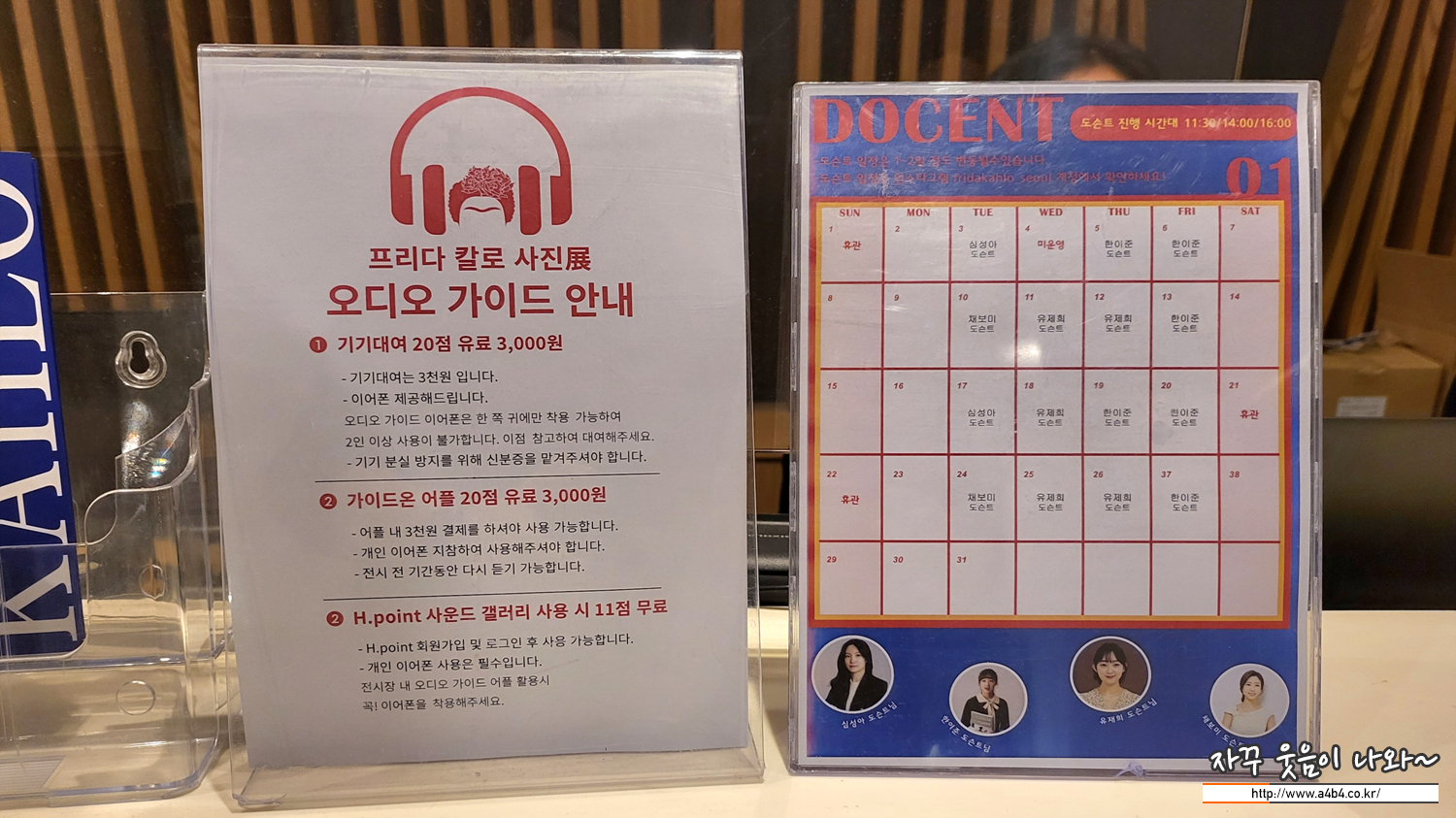 프리다 칼로 사진전은 도슨트는 화수목금 오전 11시 30분 오후 2시와 4시 3회 진행됩니다.