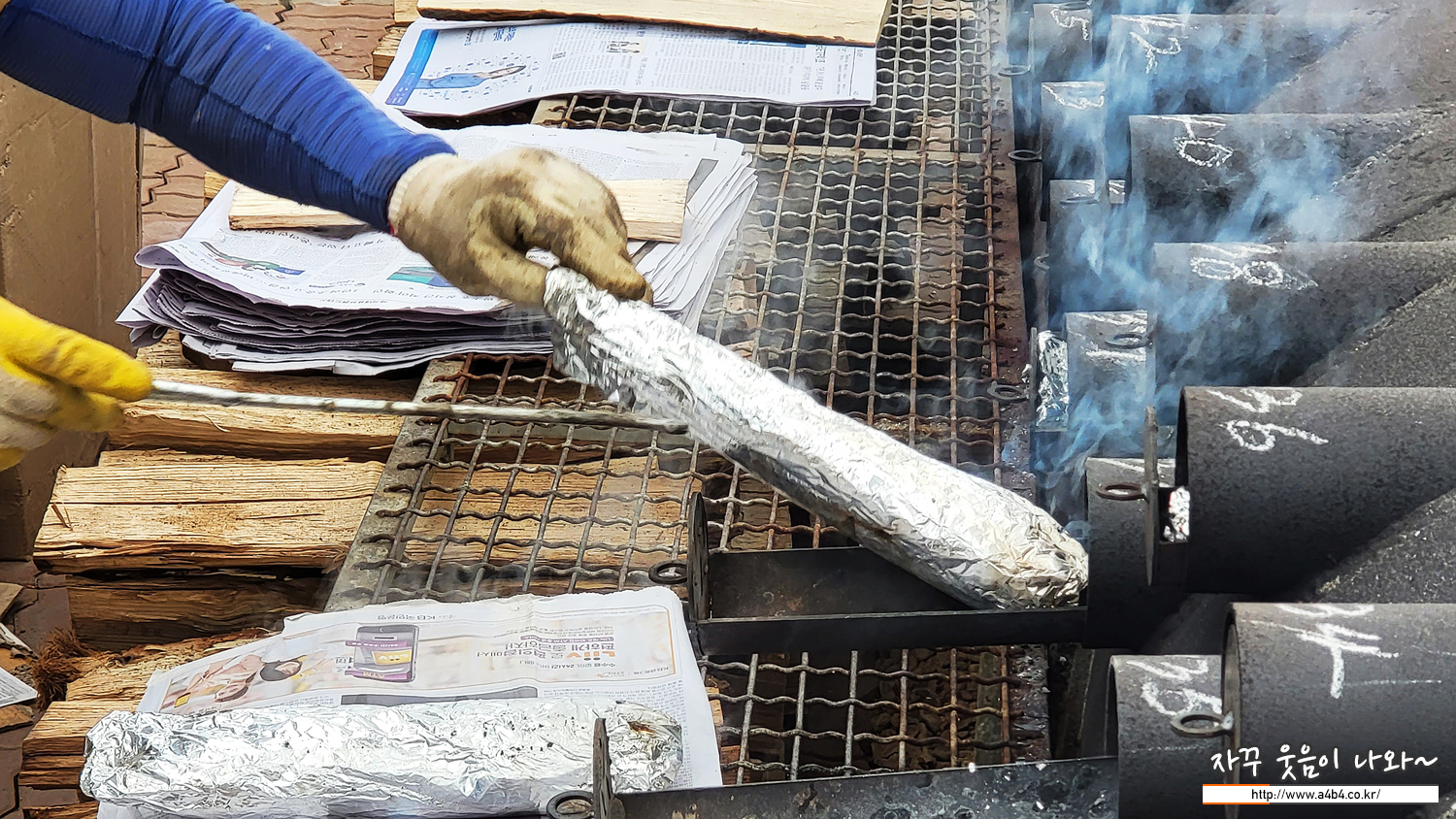 거대한 군고구마 통같은 곳에 송어를 한 마리씩 넣어주시고 번호표 주시네요. 15분 후 찾으러 오라 하시네요.