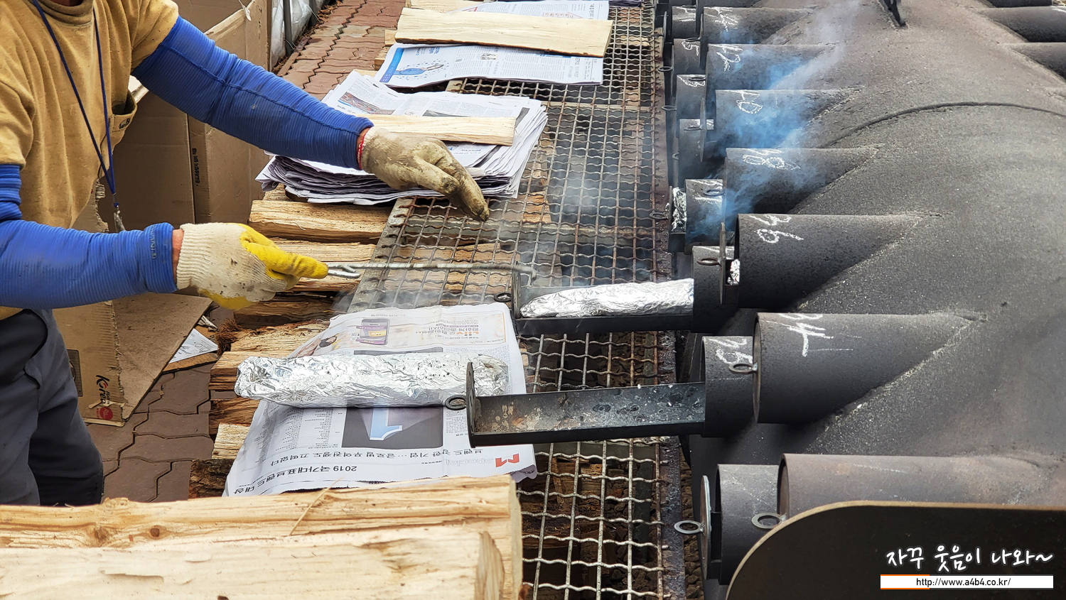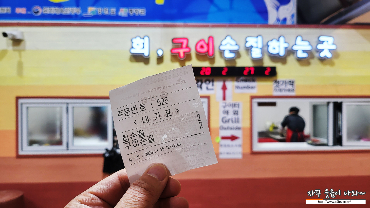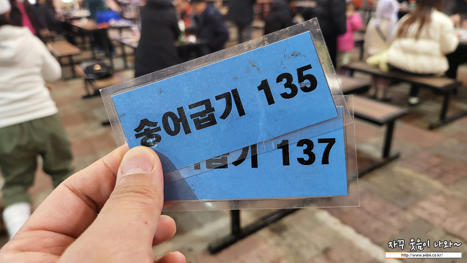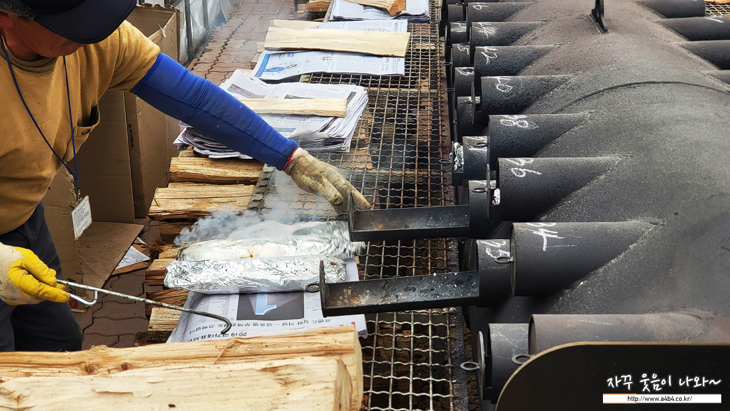 거대한 군고구마 통같은 곳에 송어를 한 마리씩 넣어주시고 번호표 주시네요. 15분 후 찾으러 오라 하시네요.