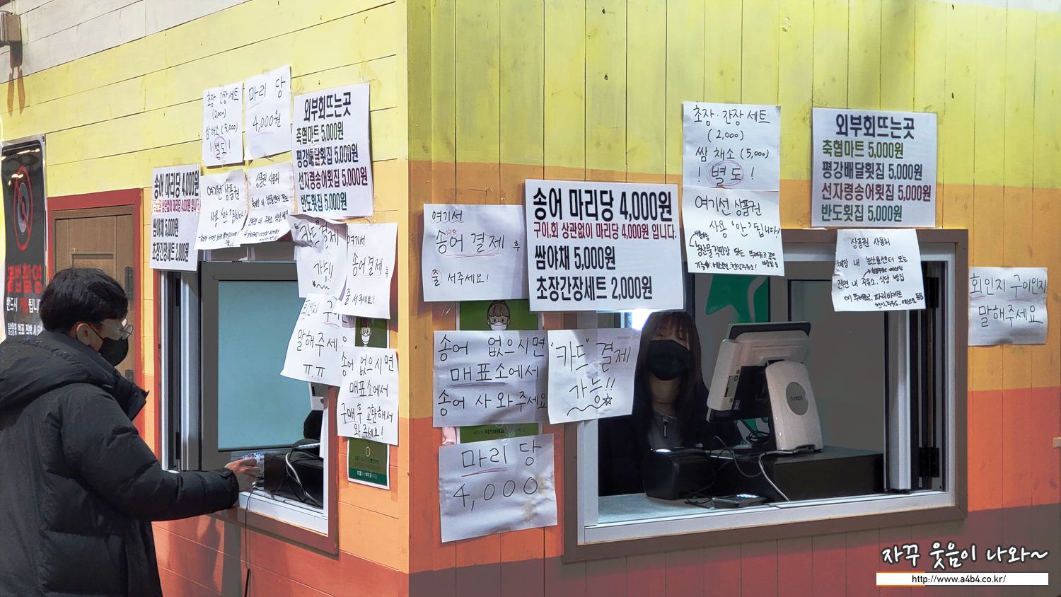 이곳에서 송어회와 구이 신청이 가능합니다. 마리당 4천원으로 가격이 약간 올랐네요. 초장이나 쌈야채도 판매하고 있습니다.