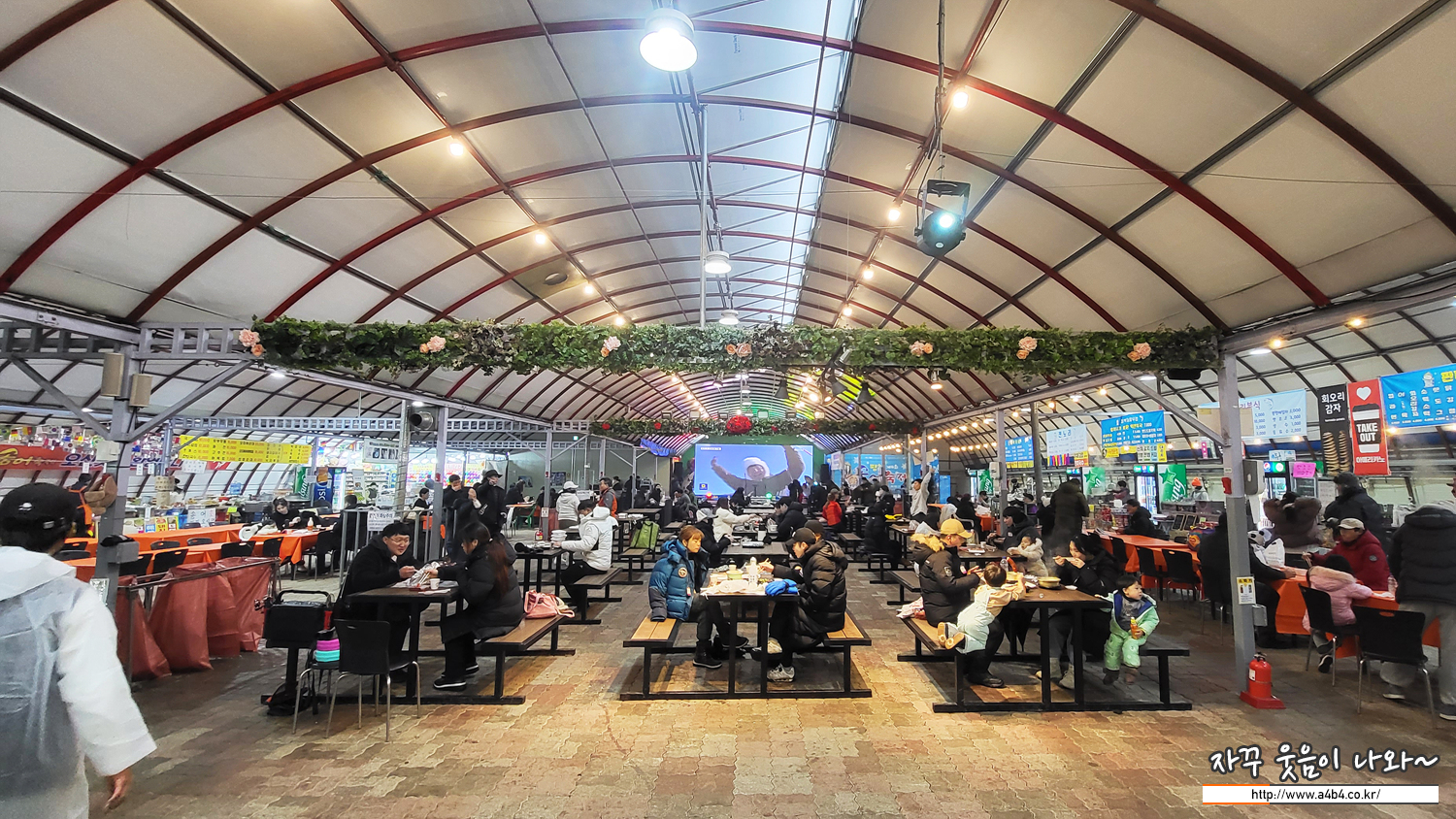 식당가가 가장 크네요. 여러 음식도 많고, 아이들이 먹을만한 메뉴도 준비되어 있습니다. 김밥 떡볶이 어묵 등등... 그리고 계속 돈까스 시키신 분 부르시는 사장님... 아이들 자리에는 꼭 돈까스가 보이네요.