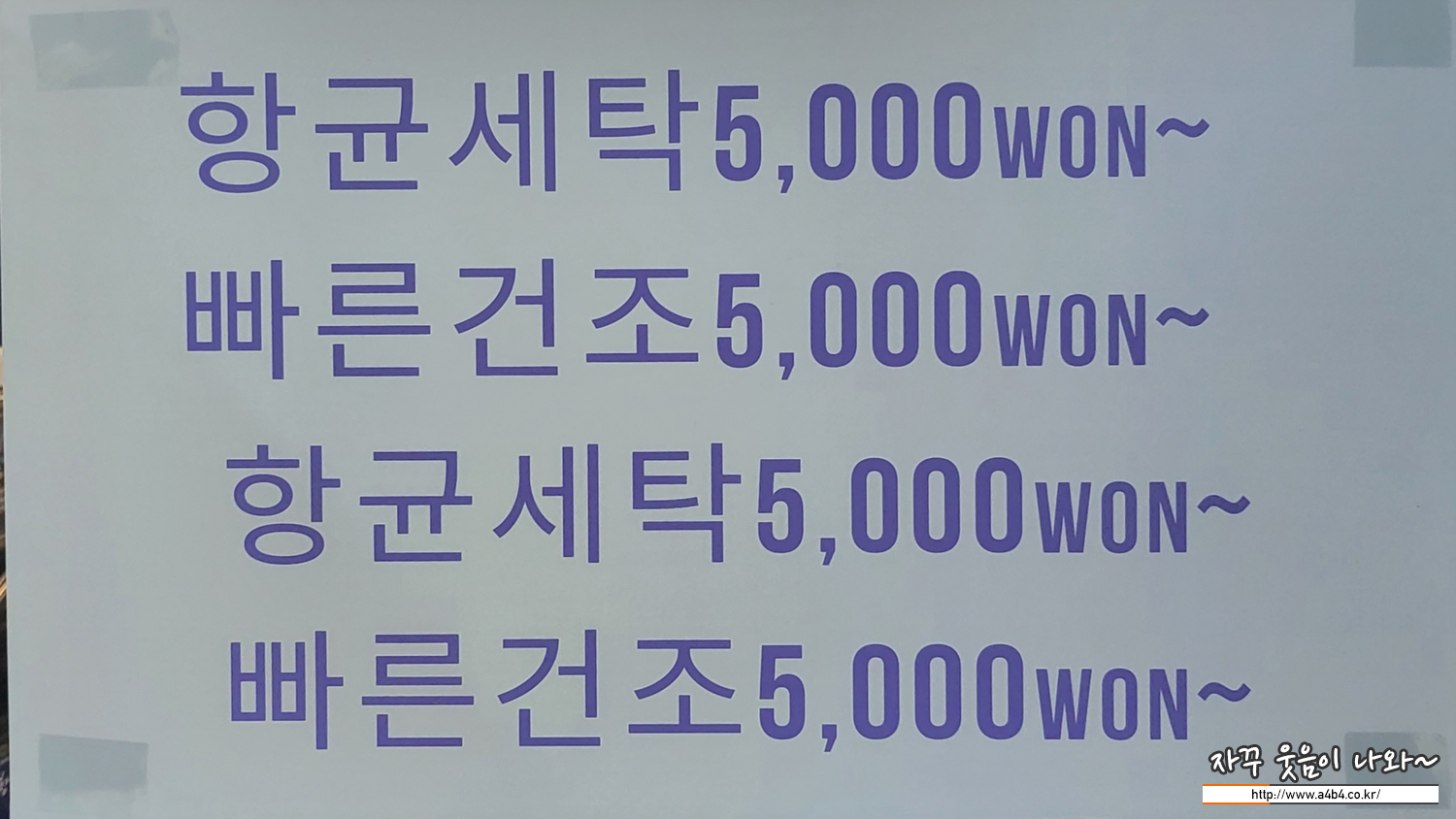 셀프방식으로 키오스크를 이용 (신용카드, 현금) 하거나 기계에 500원 동전을 사용하면 됩니다. 세탁요금은 1회에 5천 원 + 옵션에 따라 가격추가 됩니다.