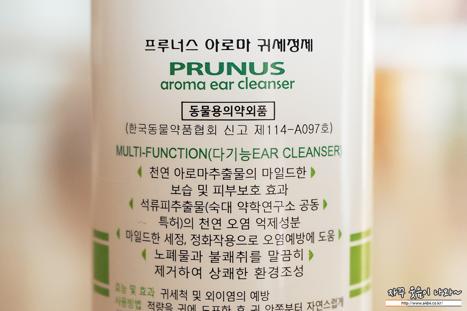 우리집 새 식구인 강아지 귀에 염증이 생겼다고 하네요. 동물병원에서 정기검사 중에 발견하고 치료와 함께 귀세정제를 받아 왔습니다. 제품명은 '프루너스 아로마 귀 세정제'로 강아지 귀염증과 귀청소를 하고 있는 약품입니다.