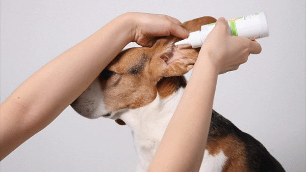 반려동물의 귀 속에 아로마 귀세정제 적당량을 도포하고 귀 안쪽부터 자연스럽게 마사지 해주세요.