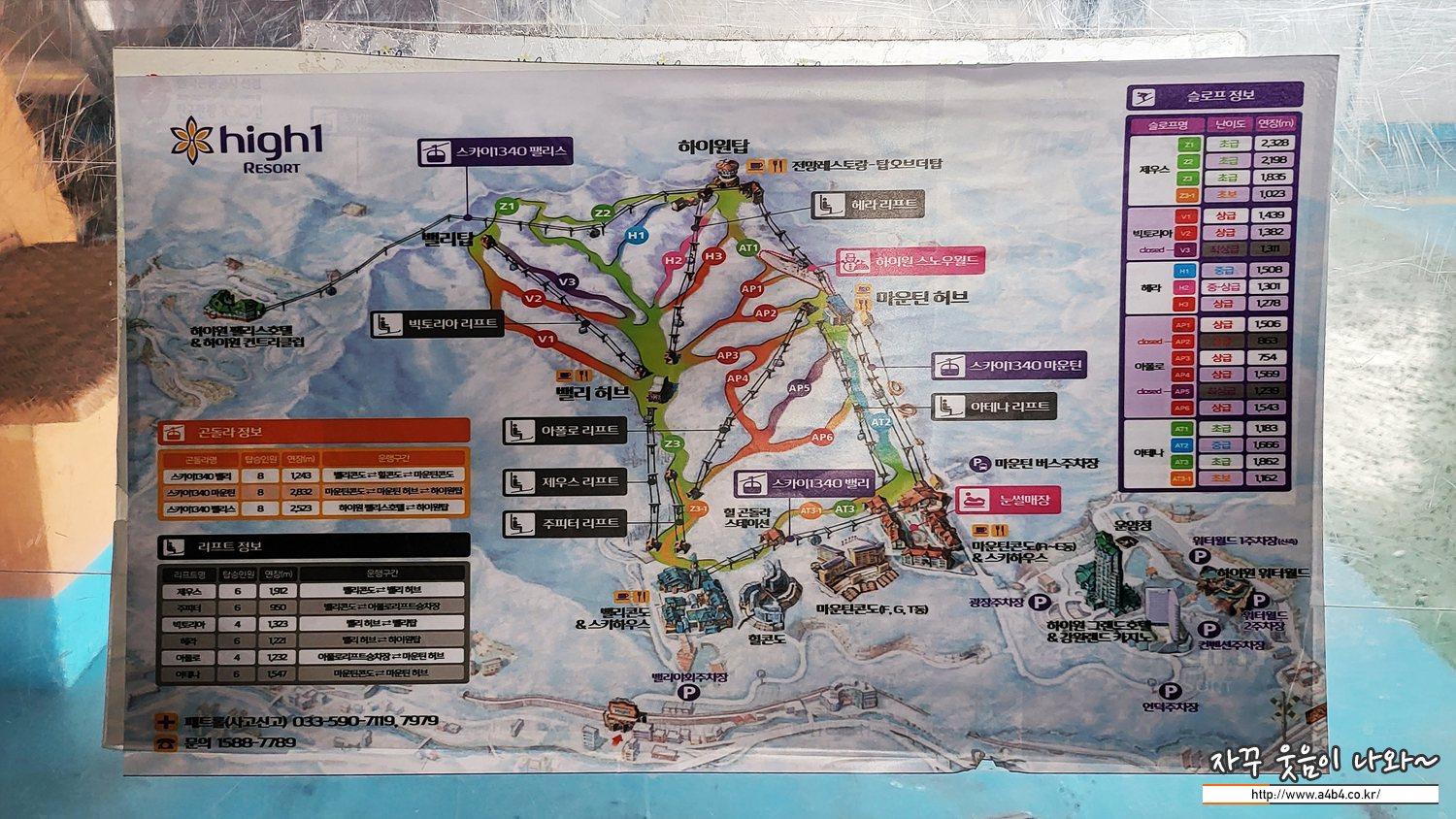 오늘 소개하는 스카이 1340 밸리 하이원 곤돌라는 오른쪽 하단 마운틴 콘도 스키하우스에서 정상인 하이원탑으로 이동한느 코스입니다. 중간인 마운틴 허브 까지는 무료 탑승이 가능하며, 이곳 마운틴 허브 1층에서 티켓팅하고 3층에서 곤도라를 바꿔타야 합니다.