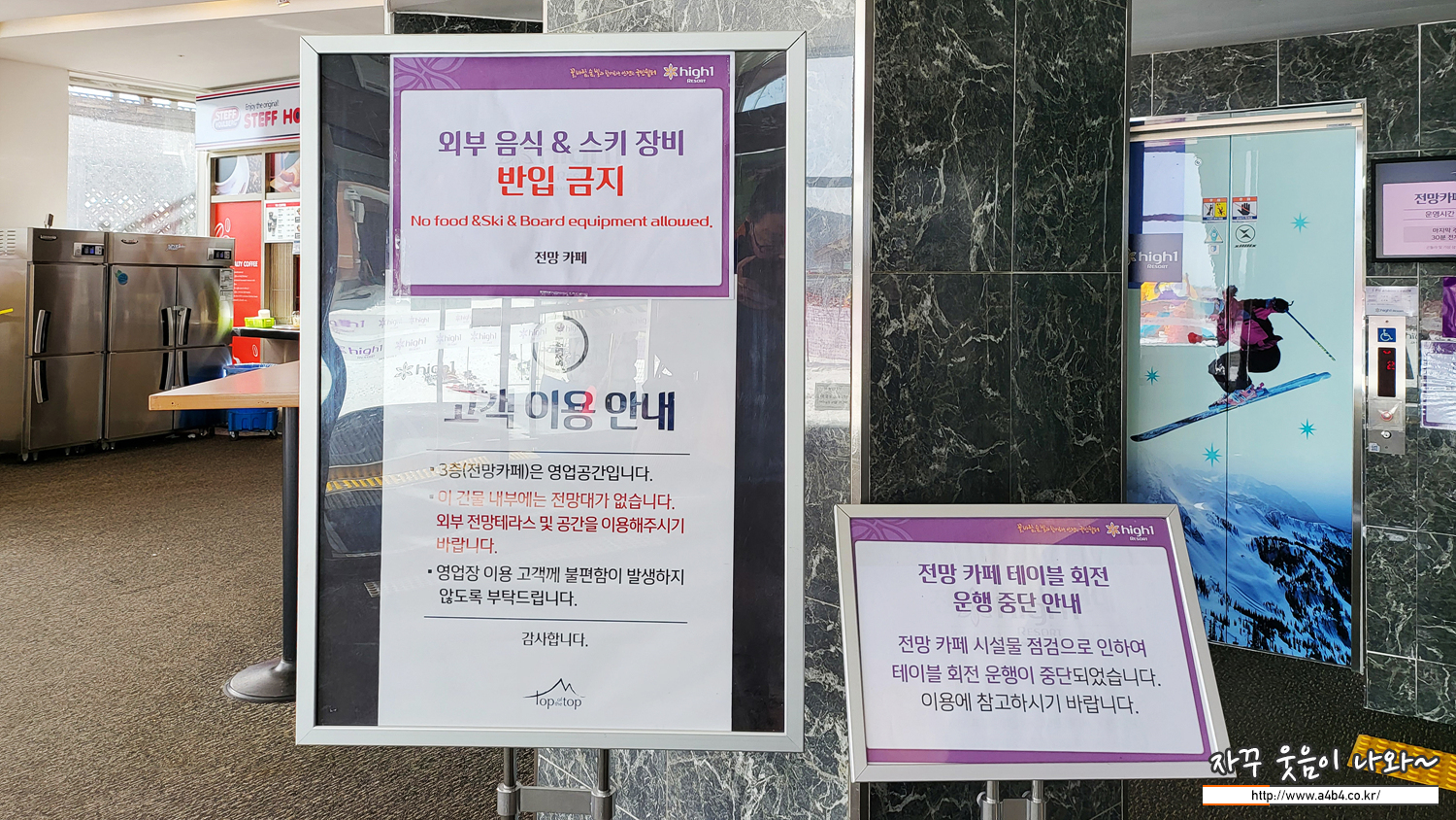 이곳은 일반 광광객 위한 공간은 아니고 유료 이용자를 위한 영업공간이라고 합니다. 생수 한 병 사러 올가갔다 내려왔네요. 생수 가격은 1,500원