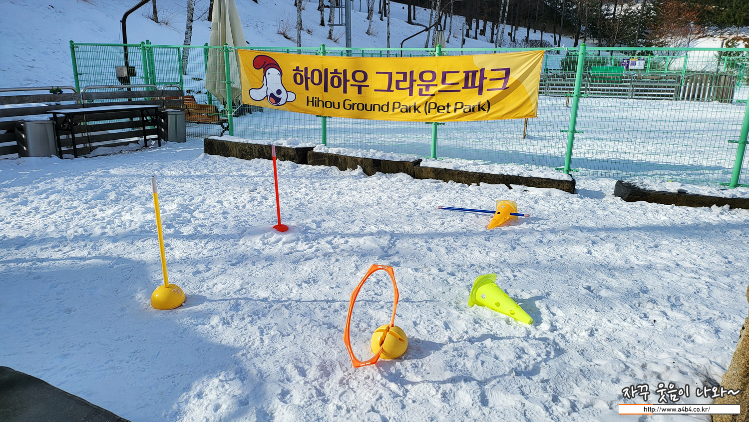 언덕 위헤는 강아지가 편하게 놀 수 있는 공간이 마련되어 있습니다. 하이하우 그라운드 파크 인데요. 강아지들이 눈치보지 않고 마음껏 뛰어놀 수 있는 어질리티 5종 구비되어 잇고, 반려인이 편히 쉴 수 있는 대형 파라솔, 벤치, 반려견을 위한 펫타올, 매너워터 구비되어 있다고 합니다.