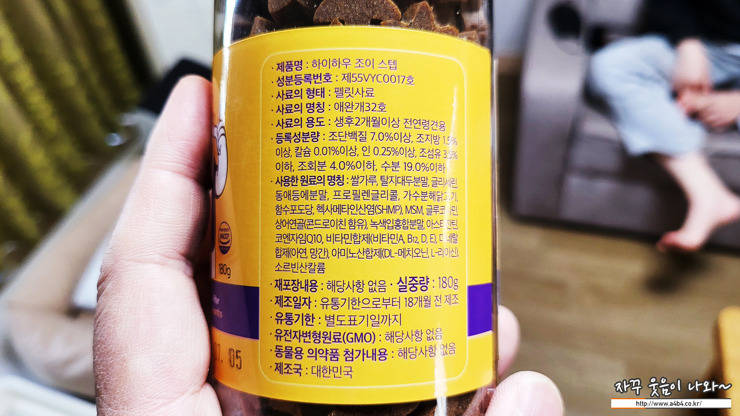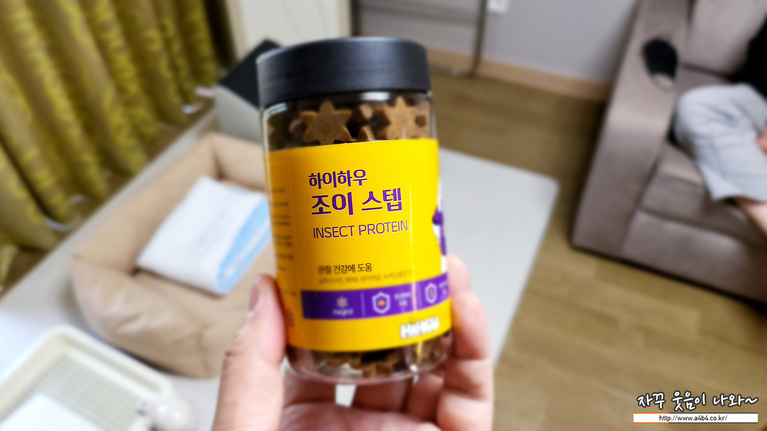 '하이하우 조이 스탭' 필렛사료로 관절 건강에 도움이 되는 사료라고 합니다. 새 병으로 준비되어 있으니, 요건 월컴 선물로 생각되네요. 조금 먹고 남은 사료는 집으로 가지고 왔습니다. 습식 사료고 집에는 없는 녀석이어서 간간히 상으로 주려고요. 설탕이도 좋아 하네요.