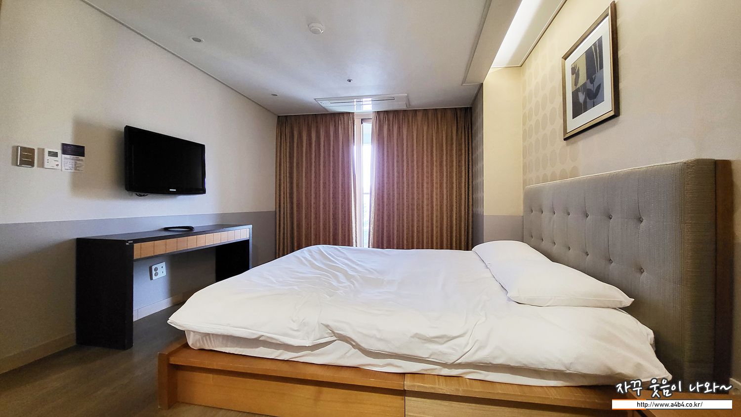 사진은 메인 방으로 2인용 침대와 TV가 설치되어 있습니다.
