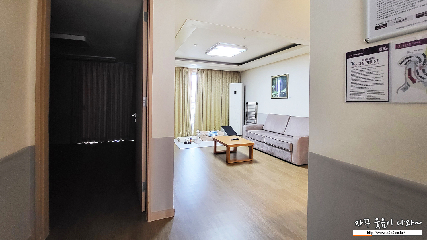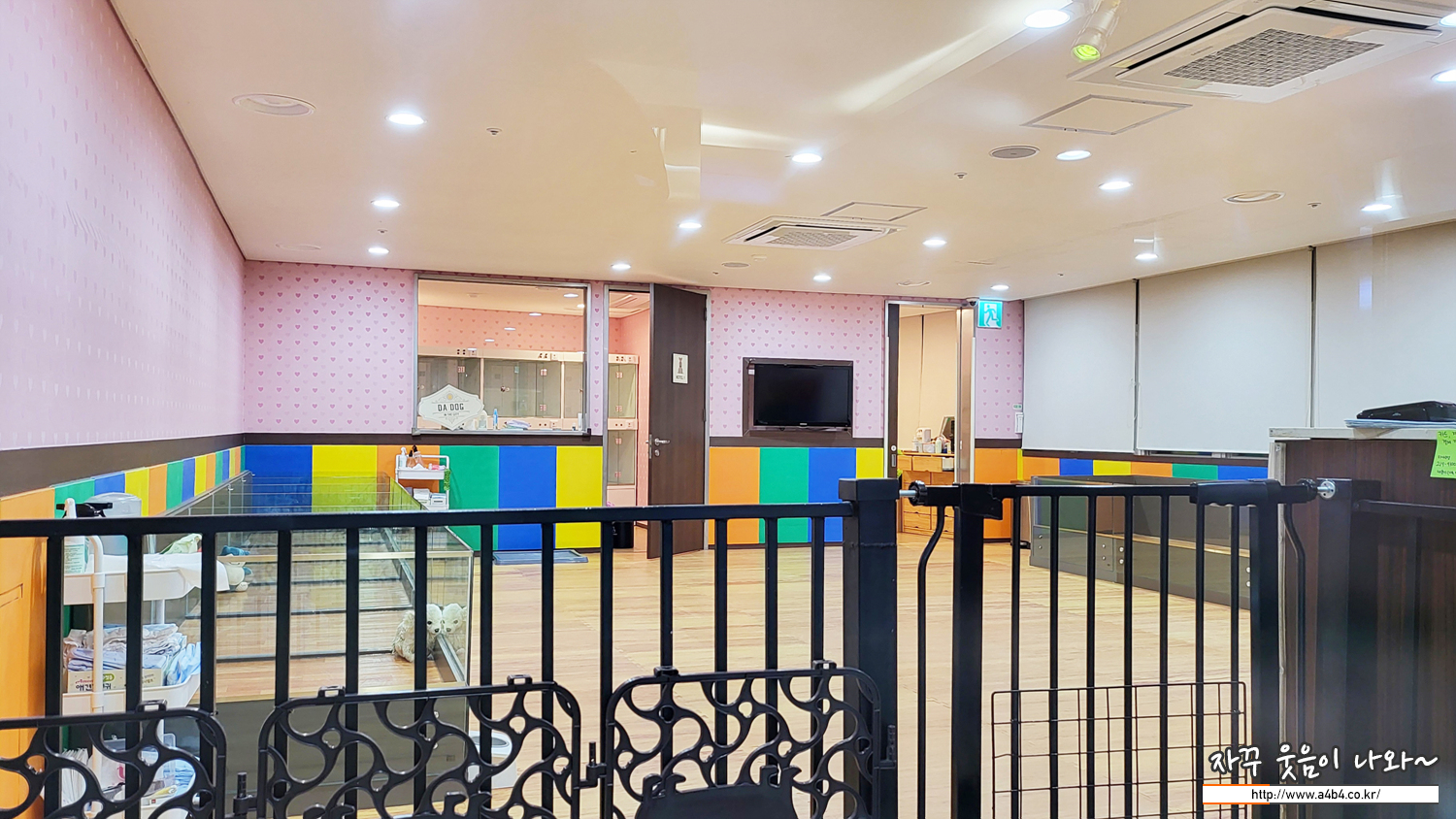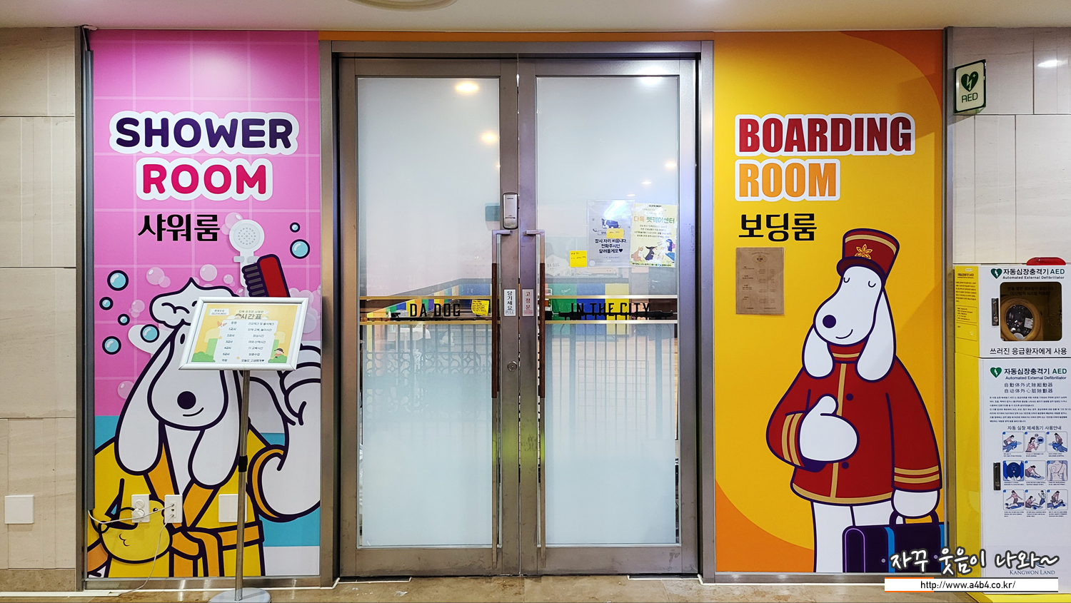 하이원 펫클럽 펫룸이 위치한 힐콘도 D동 1층에는 강아지 목욕과 강아지 케어가 가능한 보딩룸과 샤워룸이 마련되어 있습니다. 한 시간 이용료는 5천원, 종일 이용요름은 5원으로 안내되어 있는데요. 내부 시설은 이렇습니다.만...