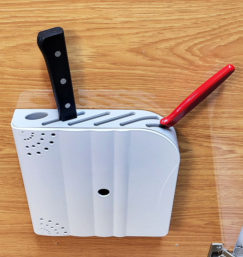 가위, 국자, 뒤집개, 식도, 과도 준비되어 있습니다. 도마는 하나...