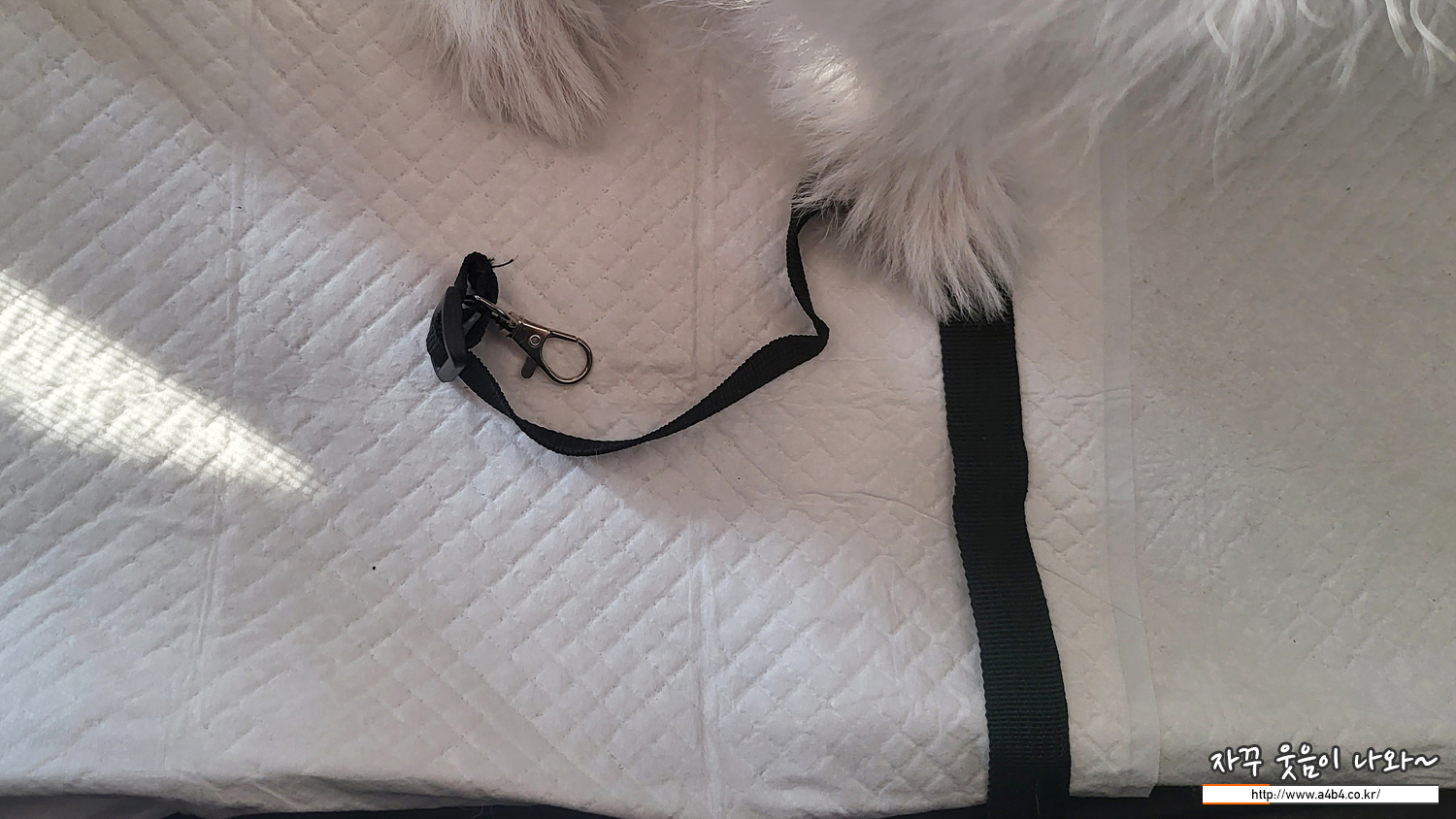 트윙클펫 강아지 켄넬 안쪽에는 하네스와 연결이 가능한 고리가 있고요. 길이 조절도 가능합니다. 이 연결고리로 강아지가 펫캐리어 밖으로 나오지 못하도록 제어가 가능하네요.