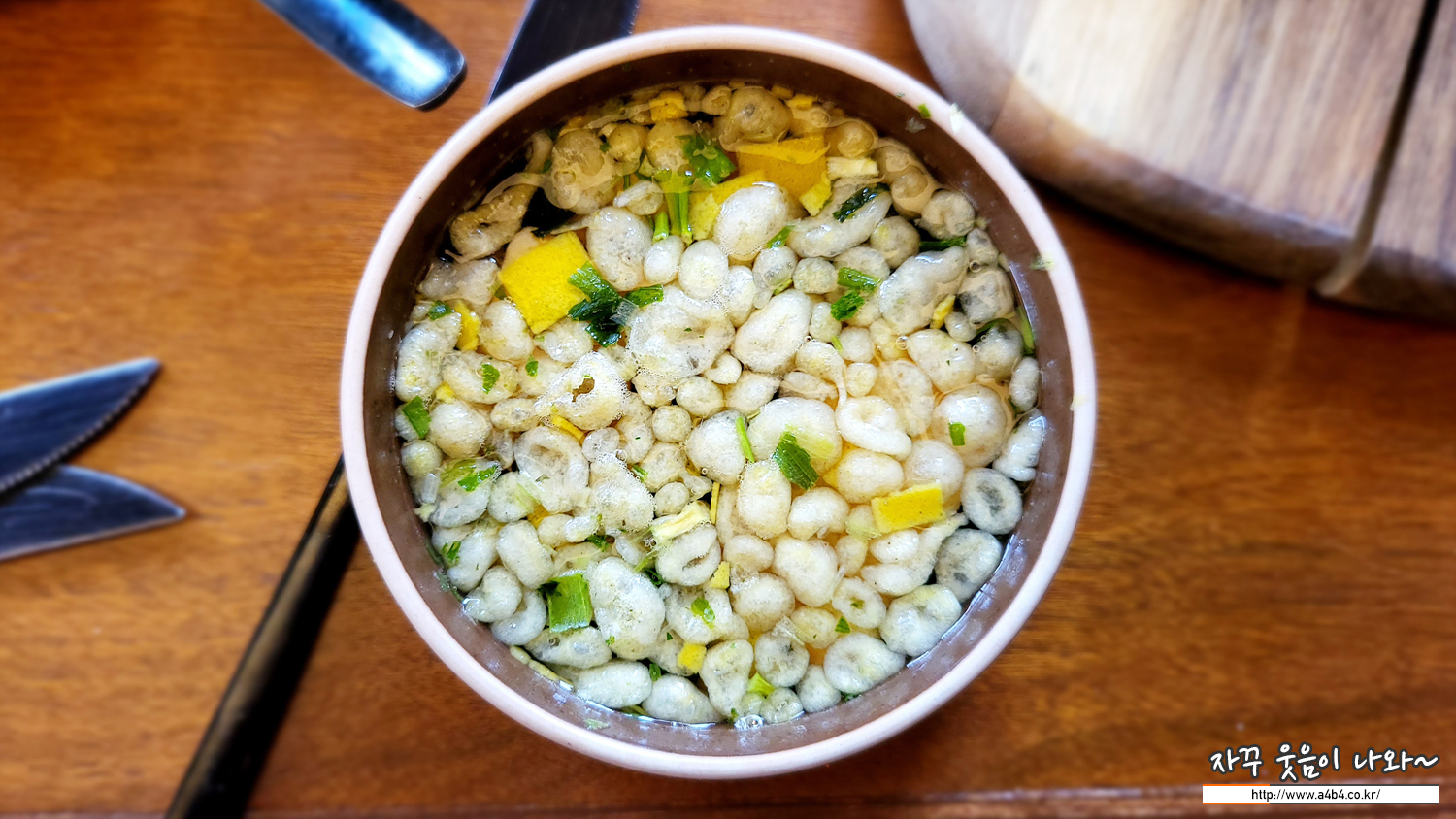 자리를 잡고 메뉴 주문하니, 요렇게 생긴 음식을 주시네요. 주문한 적이 없는데...