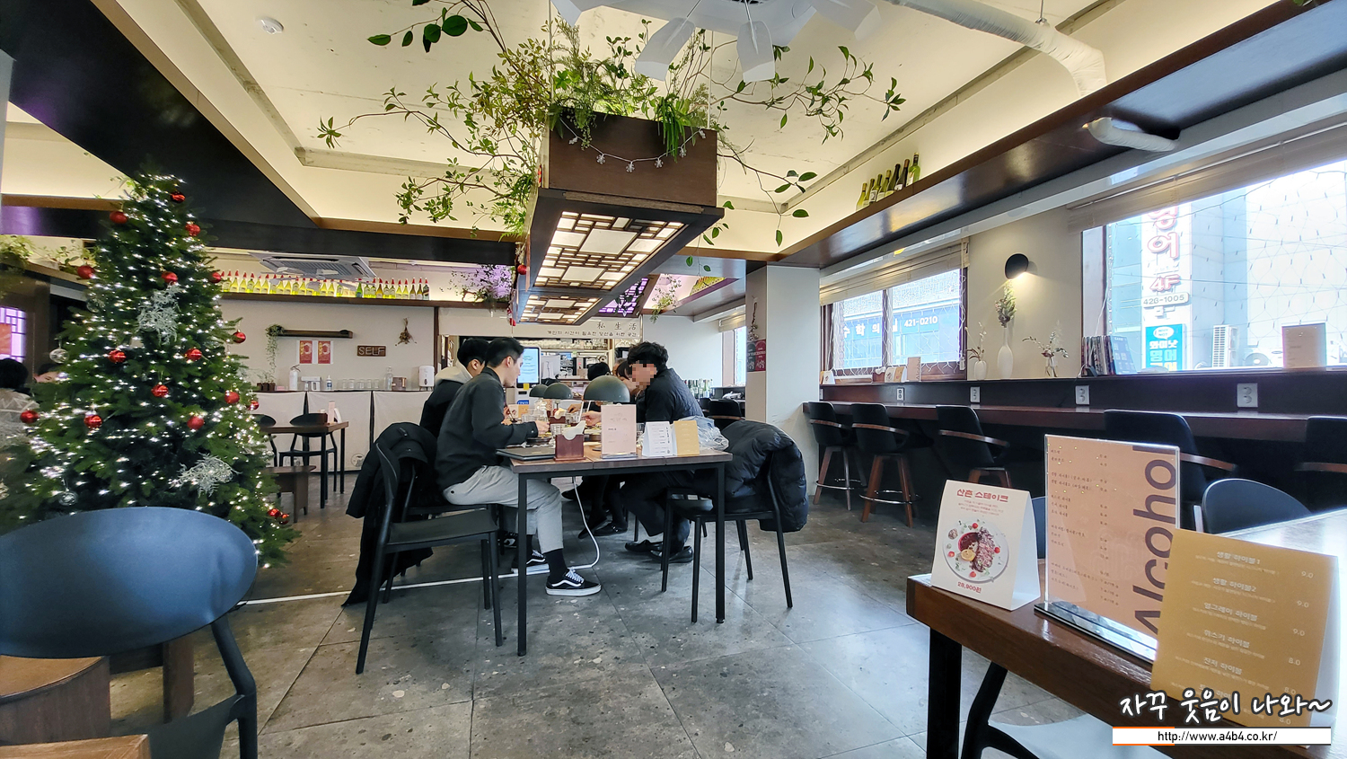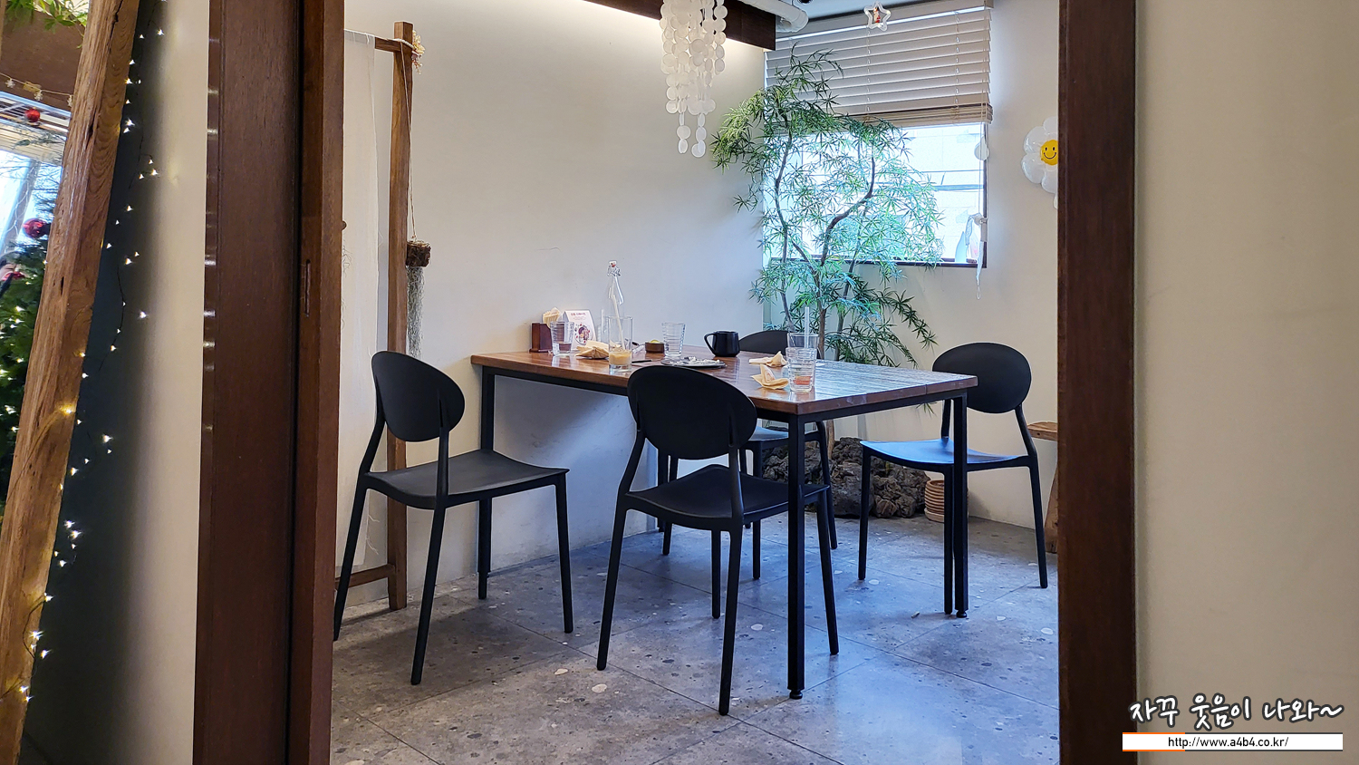 또 한켠에는 룸이 있는데요. 룸 안에는 4인 테이블 두 개가 있습니다. 이곳에는 문이 있어서 반려견을 바닥에 놓고 식사도 가능하다고 합니다. 아쉽게도 제가 방문한 시간에는 이미 식사중이신 분들이 있어 창가로 자리를 잡았습니다.