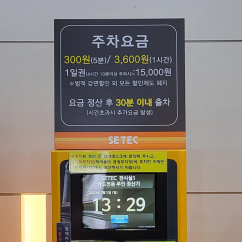 그리고 관람객 대상의 세텍 주차요금 할인은 없습니다. 여러 할인제도가 많이 축소 또는 폐지 되었다고 하네요.