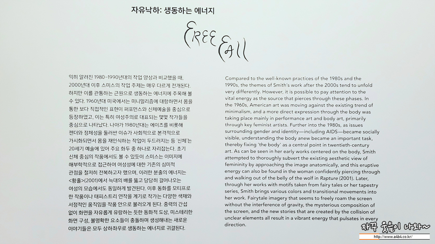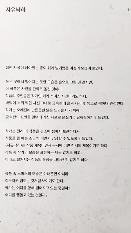 | 키키 스미스 자유낙하 전시회 전시안내