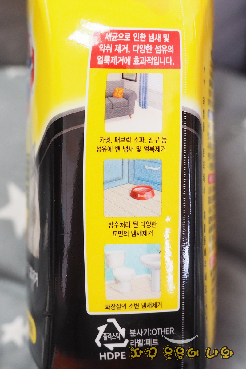 Pet Mess Remover 이라는 이름과 같이 반려동물의 배설물이나 분비물로 인한 냄새와 얼룩을 쉽게 해결하는 제품입니다. 다른 여러 브랜드의 리무버가 있지만 유한 락스 브랜드 제품은 처음입니다.