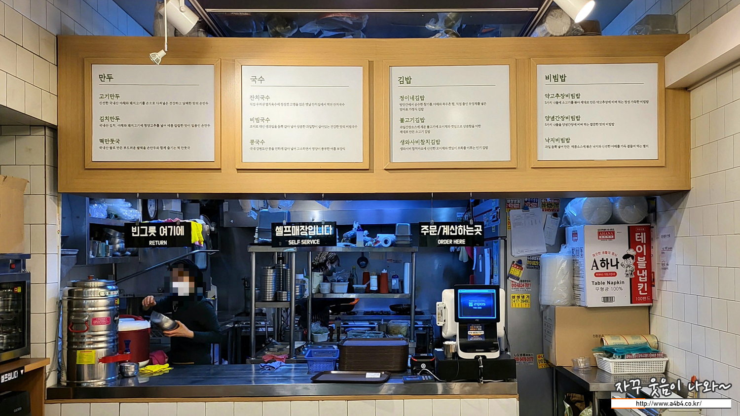 주방카운터에서 선불로 주문하시고요. 음식 수령과 반납등은 셀프입니다. '물도셀프' 인건비가 많이 오르다 보니 이런 셀프식 식당이 많이 늘어날것으로 보이네요.