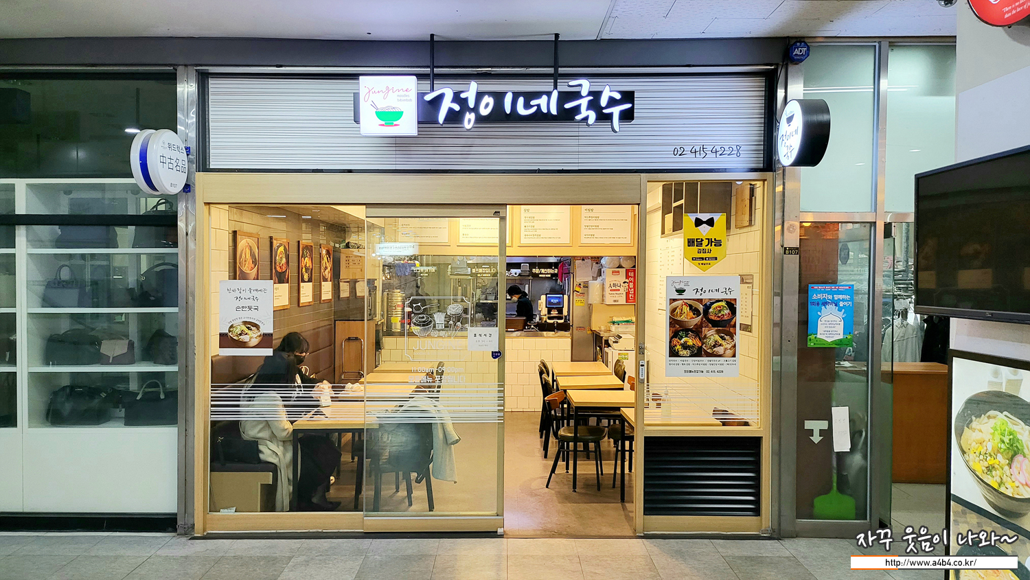 잠실맛집 정이네국수 위치는 잠실새내역 트리지움 지하1층 107-1호에 위치해 있습니다. 영업시간은 11시 ~ 21시 이며, 매주 일요일 휴무입니다. 10개 미만의 다소 작은 식당입니다.